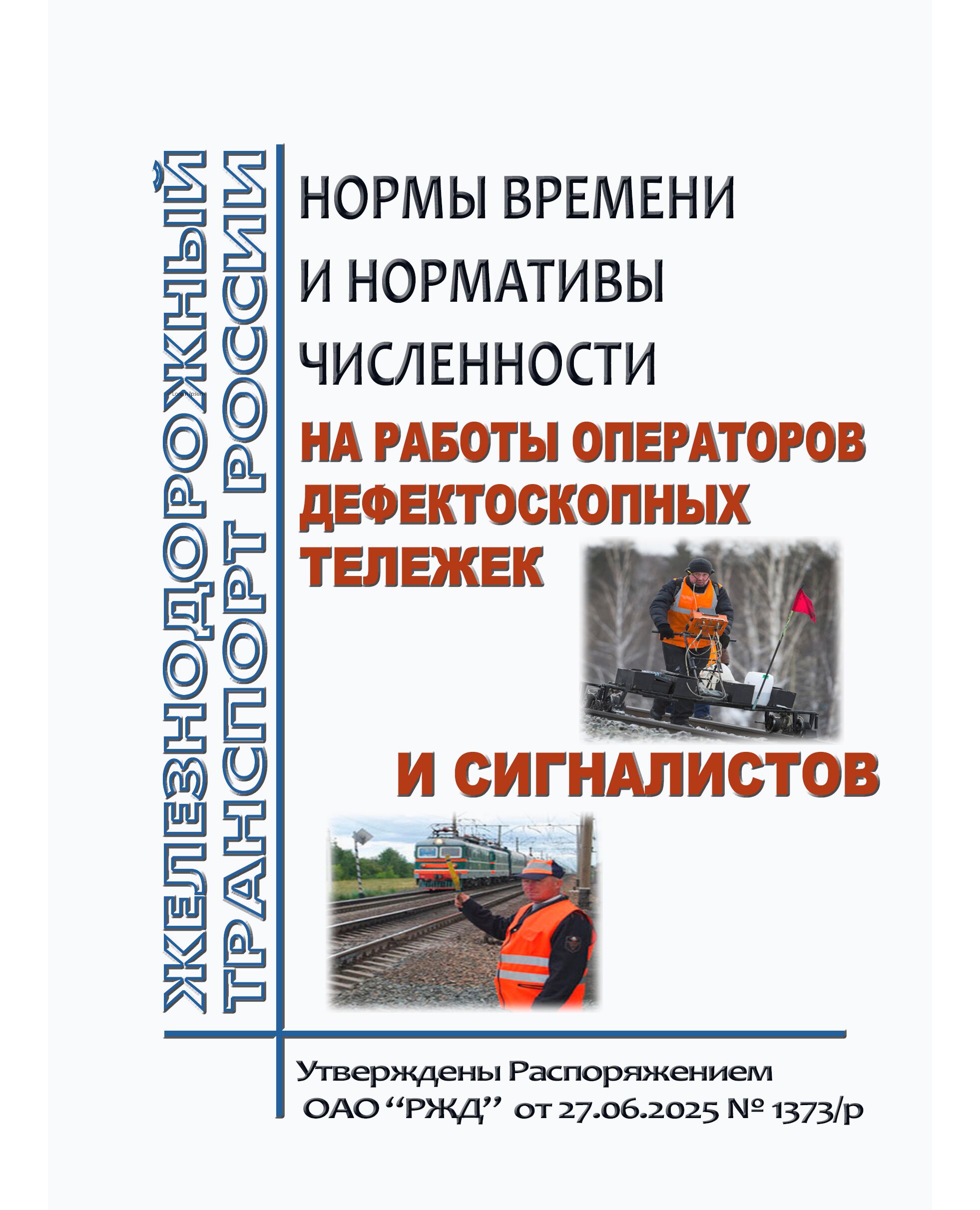 Взамен Нормы времени на работы по эксплуатации средств рельсовой дефектоскопии, нормативы численности операторов дефектоскопных тележек и сигналистов, утв. Распоряжением ОАО "РЖД" от 16.12.2014 № 2993р