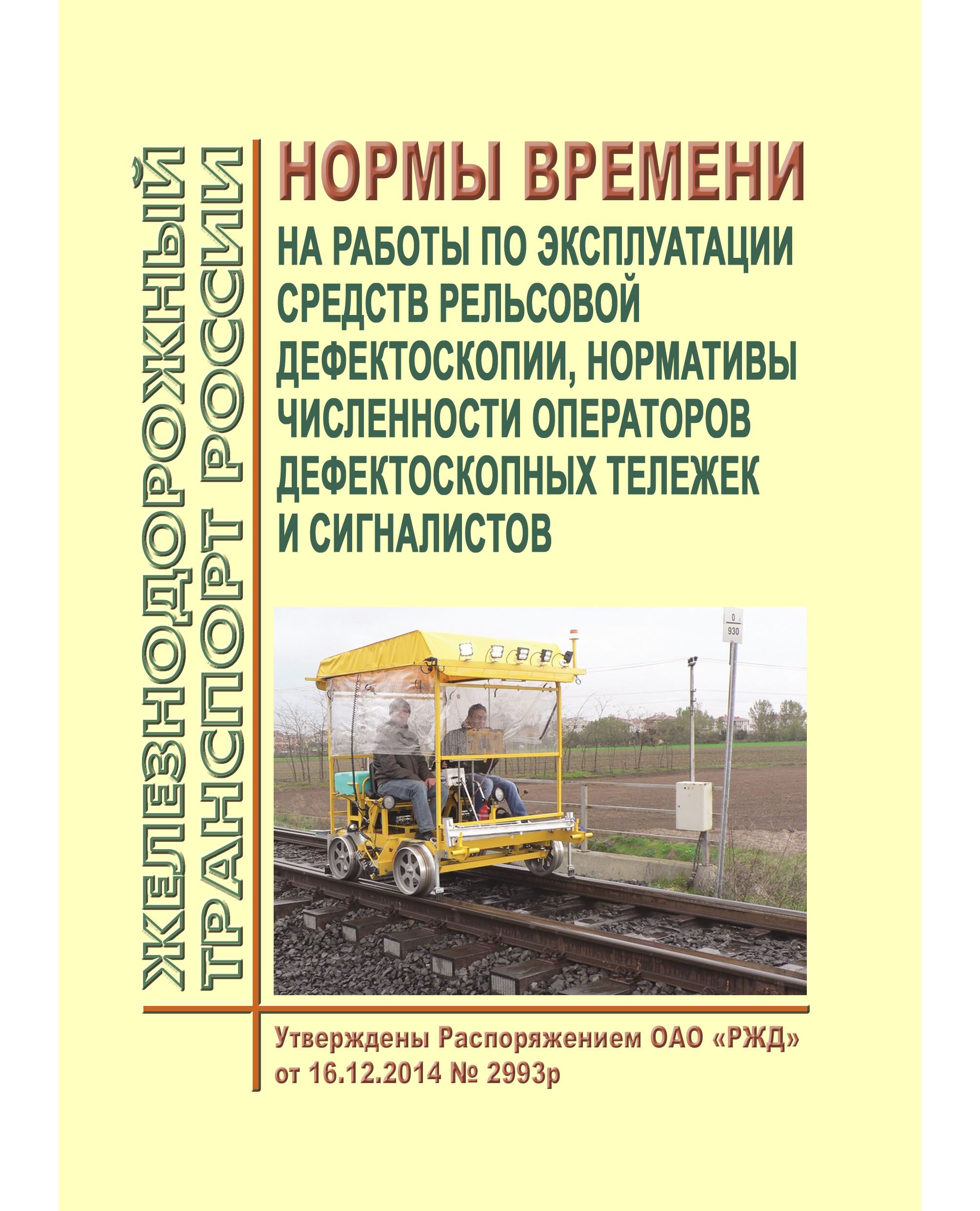 Нормы времени на работы по эксплуатации средств рельсовой дефектоскопии, нормативы численности операторов дефектоскопных тележек и сигналистов предназначены для организации планирования и нормирования труда, определения необходимой численности операторов дефектоскопных тележек и сигналистов, выполняющих работы в дистанциях пути - структурных подразделениях дирекций инфраструктуры.