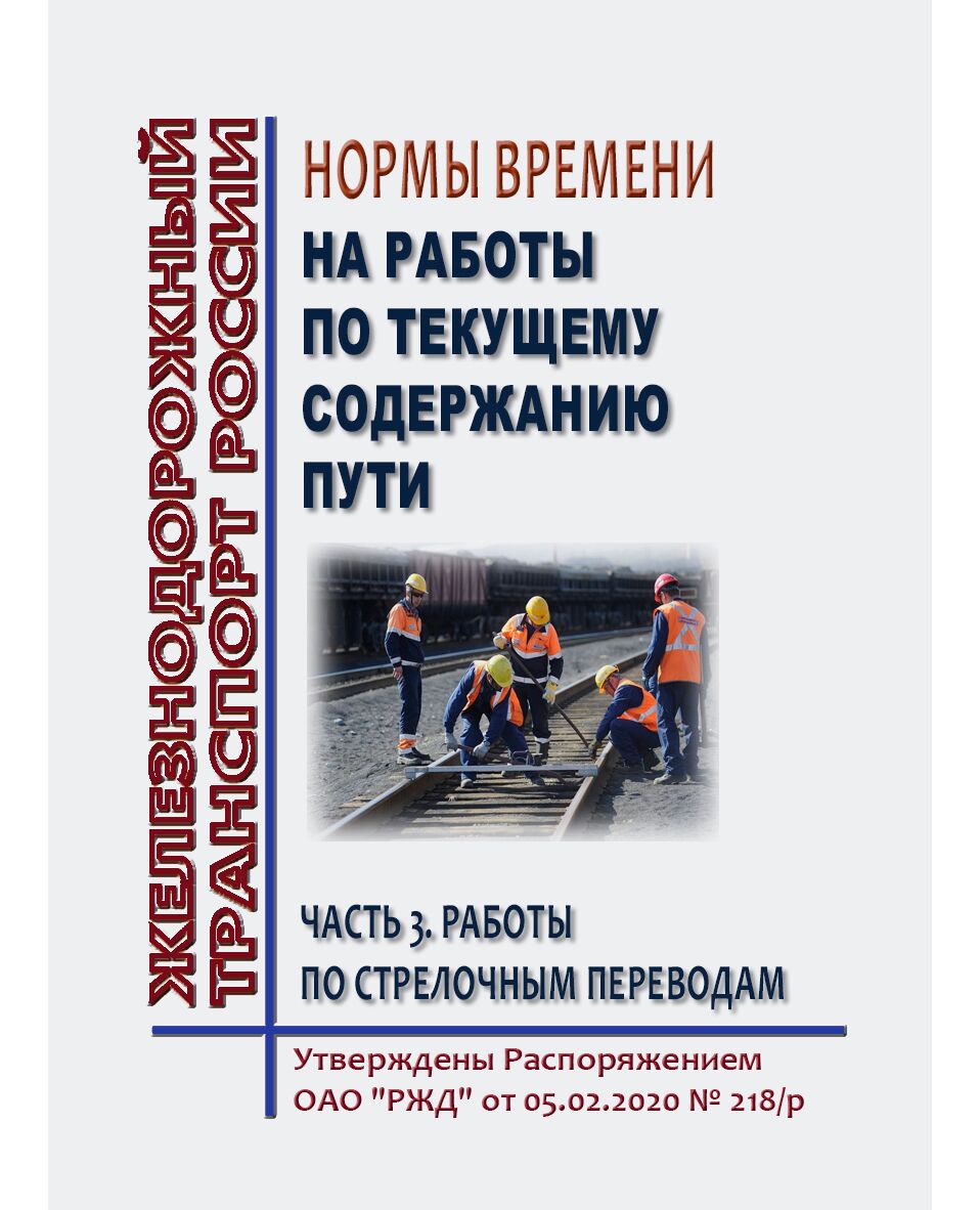 Нормы времени на работы по текущему содержанию пути. Часть 3. Работы по стрелочным переводам. Утверждены Распоряжением ОАО "РЖД" от 05.02.2020 № 218/р в редакции Распоряжения ОАО "РЖД" от 13.11.2024 № 2806/р