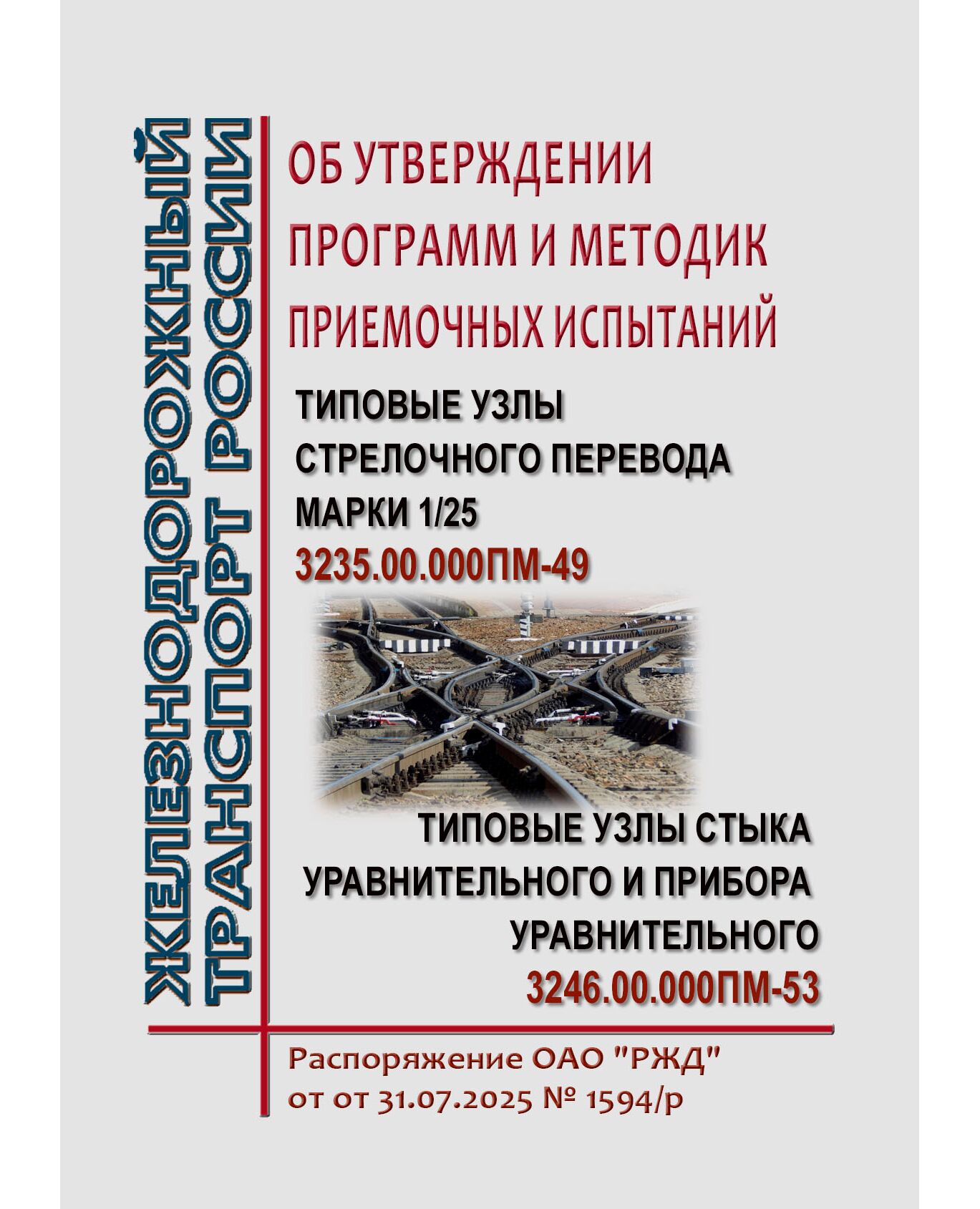 Программа и методикаприемочных испытаний "Типовые узлы стрелочного перевода марки 1/25" 3235.00.000ПМ-49 и Программа и методика приемочных испытаний "Типовые узлы стыка уравнительного и прибора уравнительного" 3246.00.000ПМ-53.