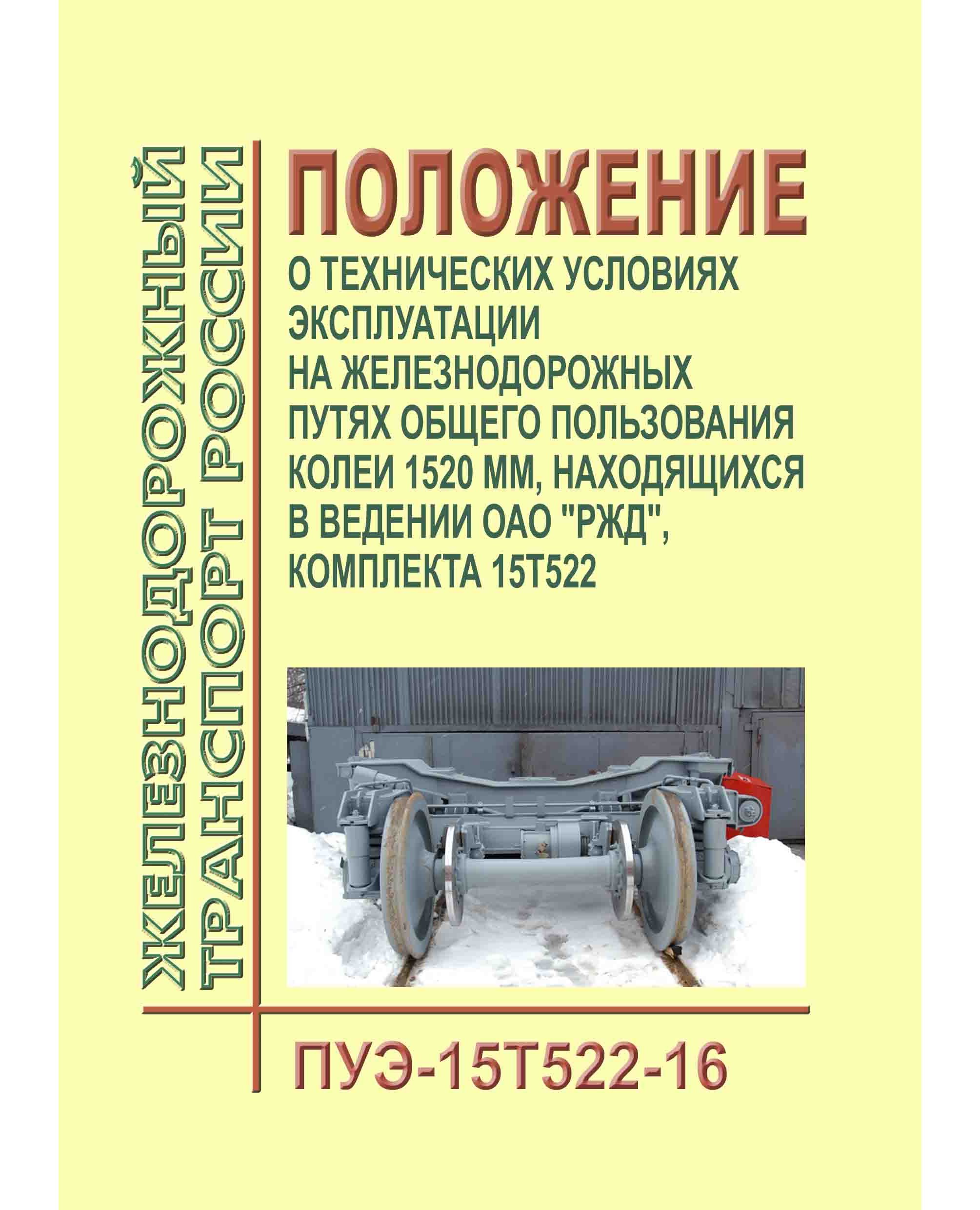 Положение о технических условиях эксплуатации на железнодорожных путях общего пользования колеи 1520 мм, находящихся в ведении ОАО "РЖД", комплекта 15Т522 (ПУЭ-15Т522-16). Утверждено Распоряжением ОАО "РЖД" от 09.09.2016 № 1847р