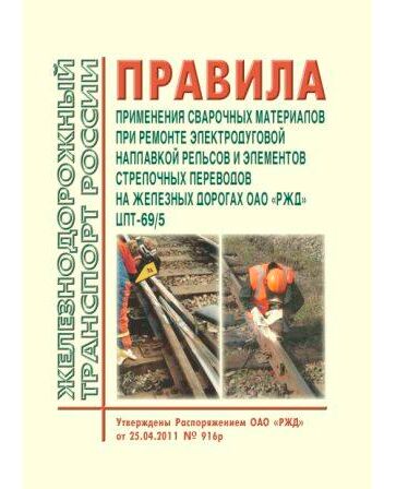 Правила применения сварочных материалов при ремонте электродуговой наплавкой рельсов и элементов стрелочных переводов на железных дорогах ОАО "РЖД" N ЦПТ-69/5, утвержденные ОАО "РЖД" 15 марта 2011 года
