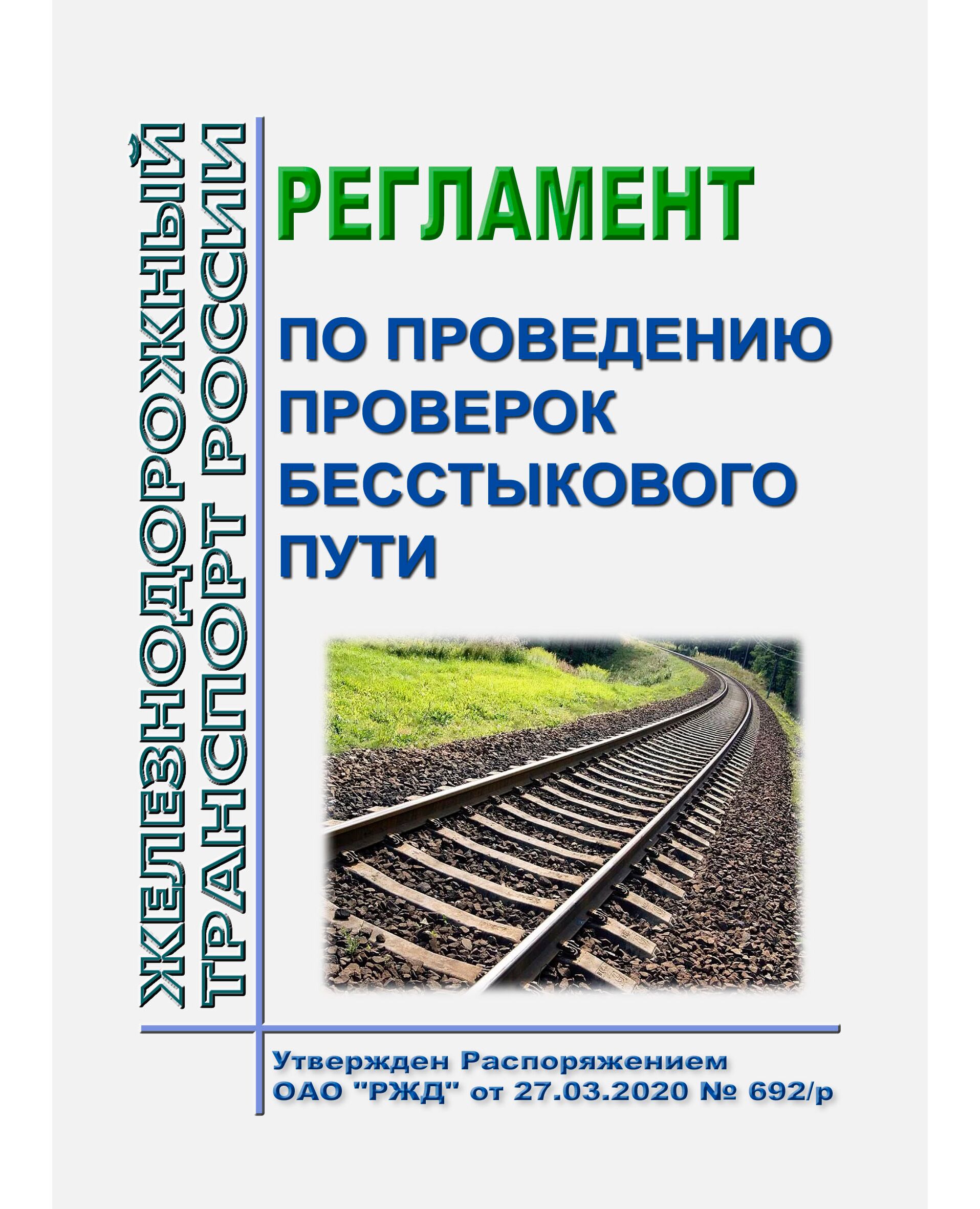 Регламент по проведению проверок бесстыкового пути. Утвержден Распоряжением ОАО "РЖД" от 27.03.2020 № 692/р в редакции Распоряжения ОАО "РЖД" от 13.12.2023 № 3167/р