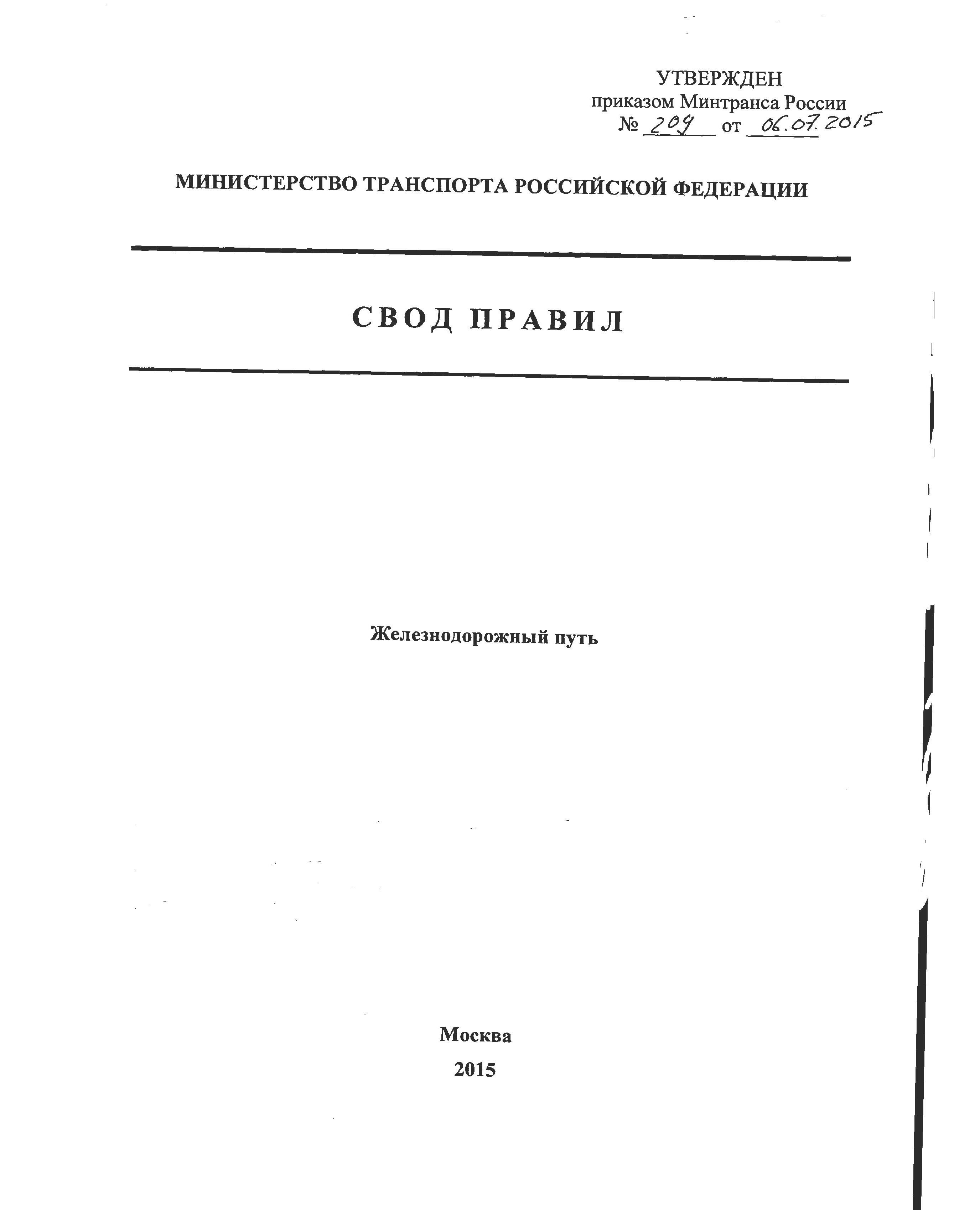 Свод правил устанавливает правила проектирования, строительства и реконструкции железнодорожного пути общего пользования и железнодорожного пути необщего пользования. Свод правил распространяется на железнодорожный путь, предназначенный для пропуска пассажирских поездов со скоростью до 200 км/ч включительно и грузовых поездов со скоростью до 120 км/ч включительно с вагонами, имеющими статические осевые нагрузки до 245 кН/ось (25 тс/ось) и погонные по осям сцепления до 102,9 кН/м (10,5 тс/м), динамическую нагрузку на железнодорожный путь от тележки до 167,6 кН/м (17,1 тс/м). При этом земляное полотно вновь строящихся железнодорожных линий для грузового и смешанного движения поездов рассчитывается под нагрузку на ось грузового вагона 294 кН (30 тс/ось) и динамическую нагрузку на железнодорожный путь от тележки 201 кН/м (20,5 тс/м).
