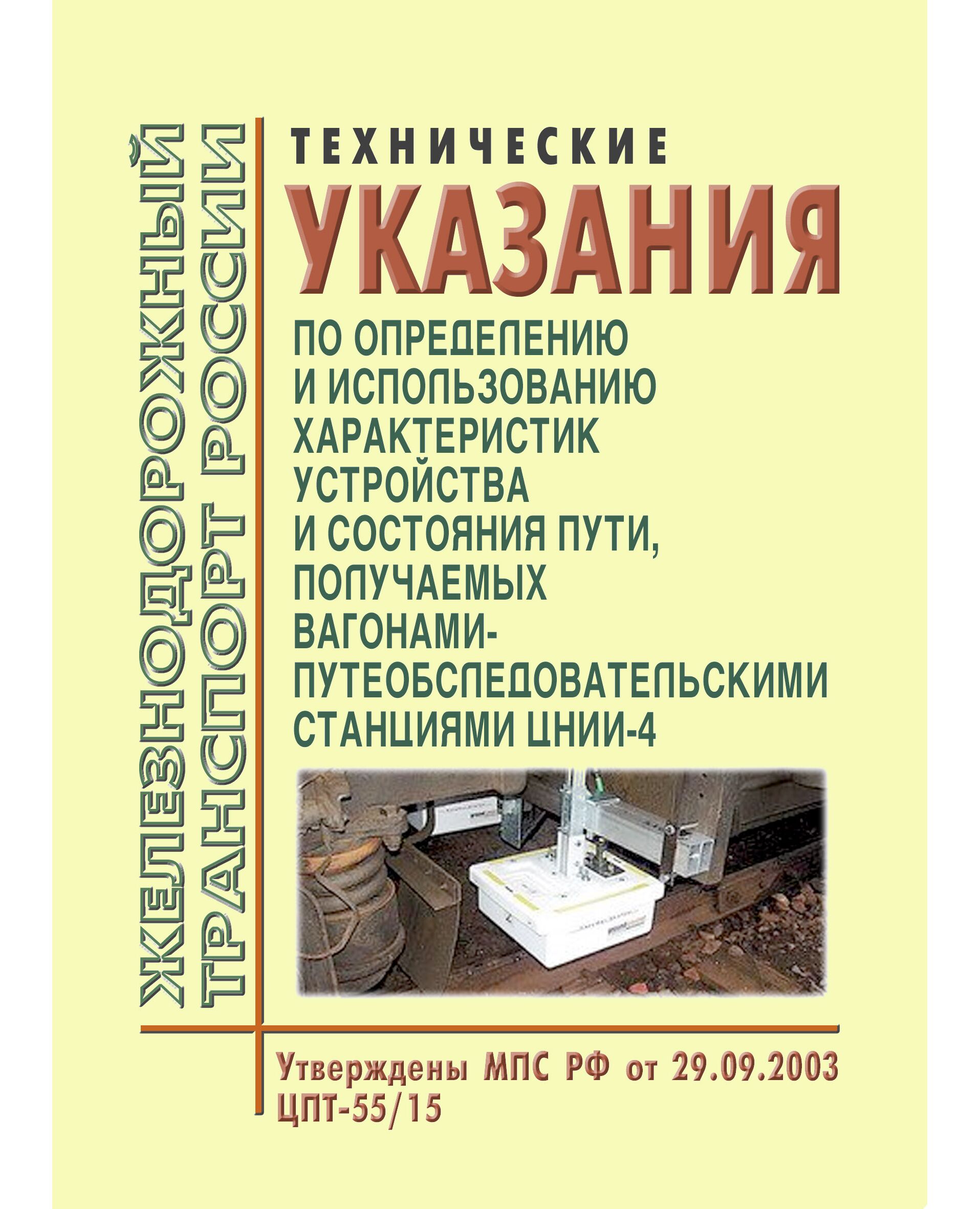 Настоящие Технические указания регламентируют порядок контроля параметров устройства и состояния пути вагонами путеобследовательскими станциями типа ЦНИИ-4М и ЦНИИ-4МД и использования получаемой информации в целях диагностики состояния железнодорожного пути, повышения безопасности и скоростей движения поездов, планирования путеремонтных работ и оценки качества их выполнения.