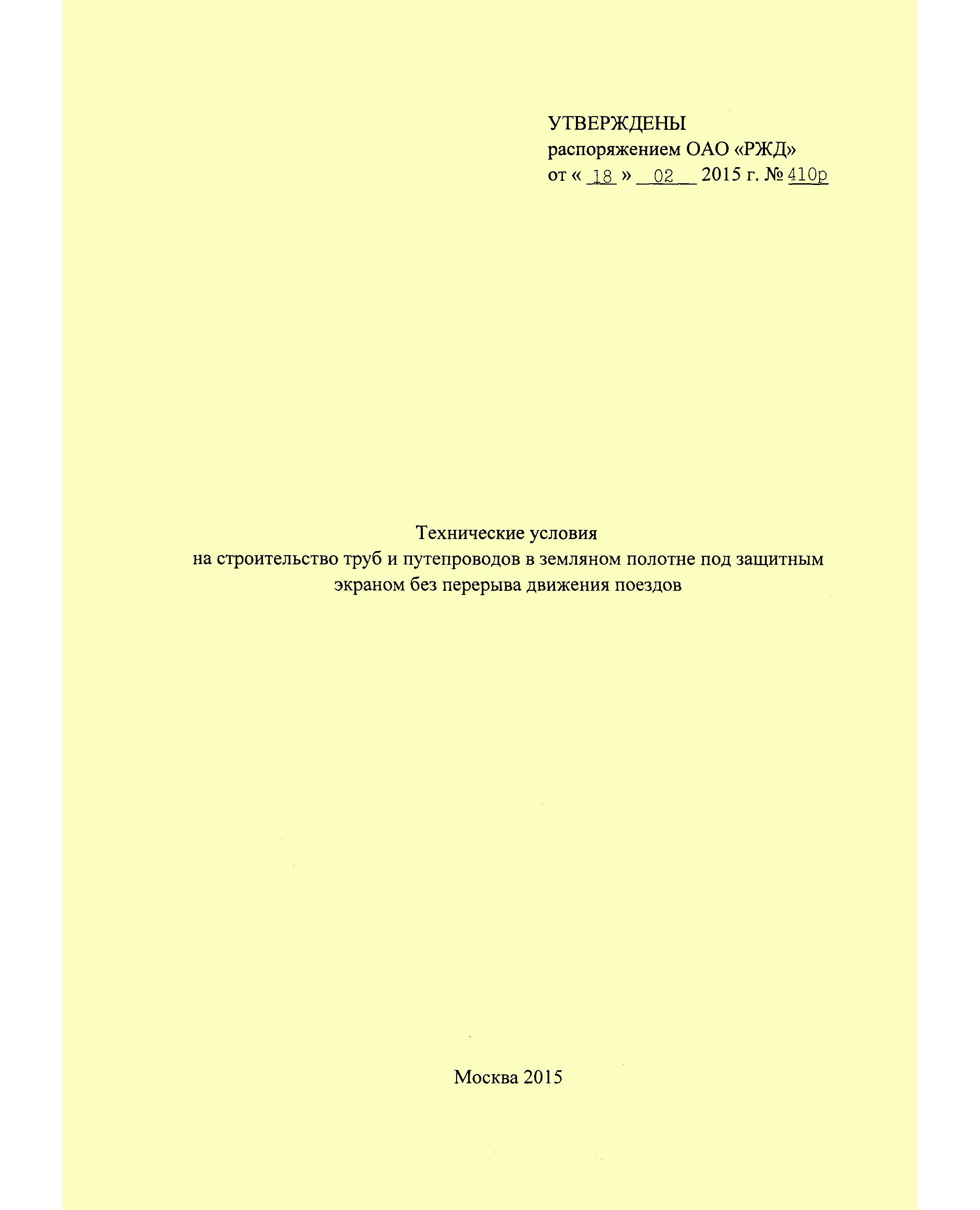 Технические условия содержат конструктивно-технологические требования к защитным экранам при строительстве труб и путепроводов в земляном полотне и распространяются на строительство, реконструкцию и капитальный ремонт водопропускных труб и путепроводов