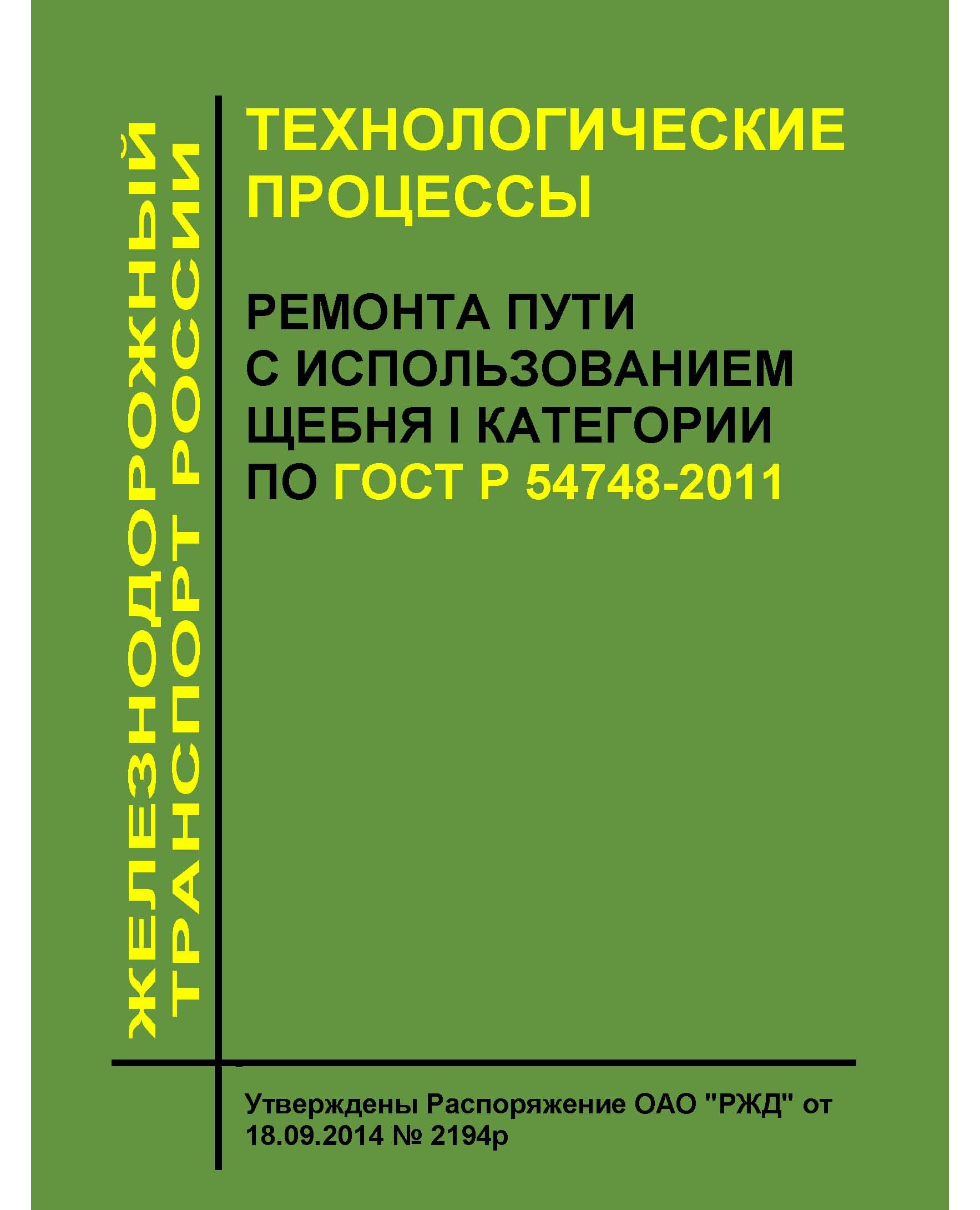 Технологические процессы ремонта пути с использованием щебня I категории по ГОСТ Р 54748-2011. Утверждены Распоряжение ОАО "РЖД" от 18.09.2014 № 2194р