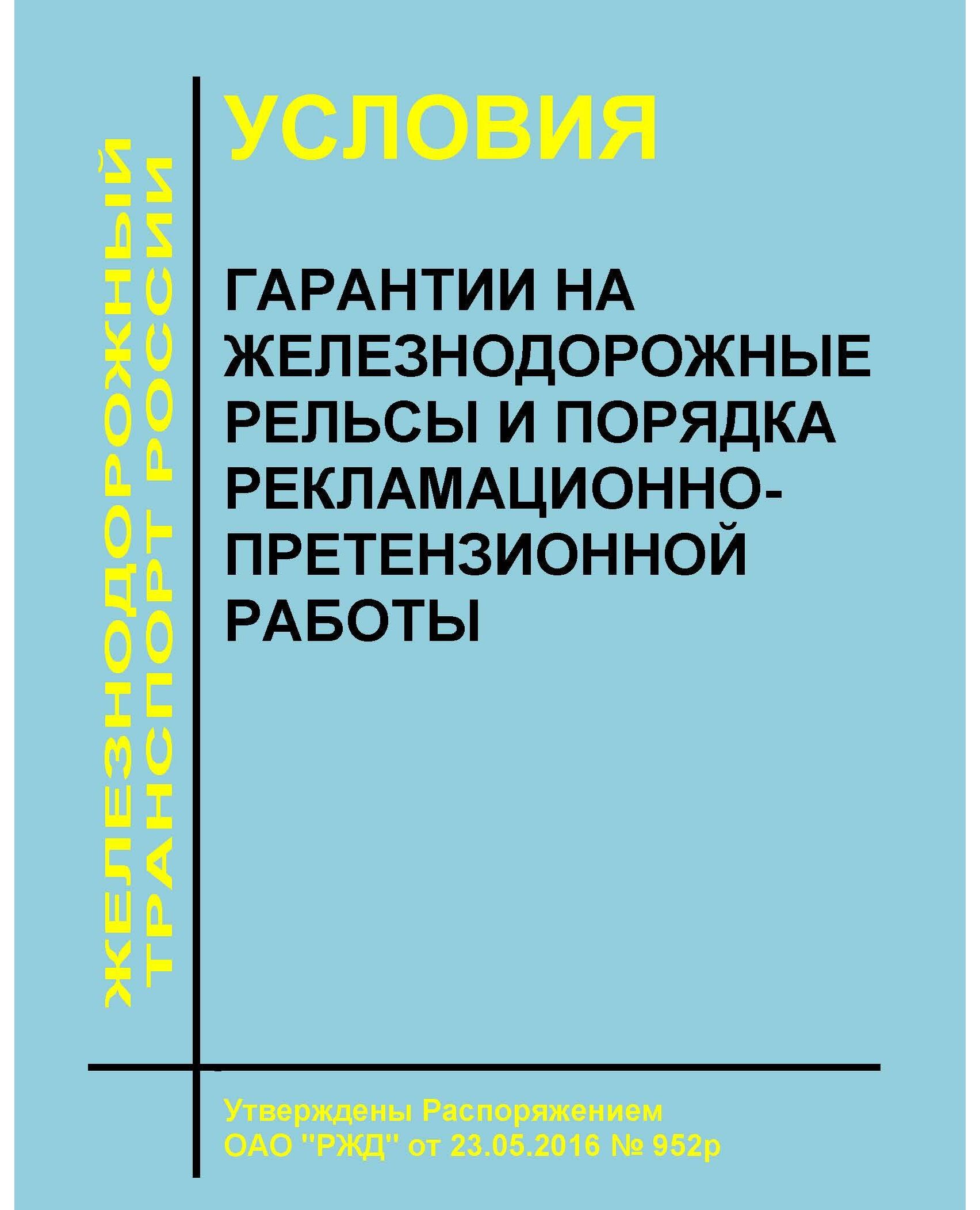 Взамен Условий гарантии качества железнодорожных рельсов и порядок предъявления и рассмотрения претензий на рельсы, не соответствующие гарантийным обязательствам, утв. Распоряжением ОАО "РЖД" от 28.06.2010 № 1386р.
