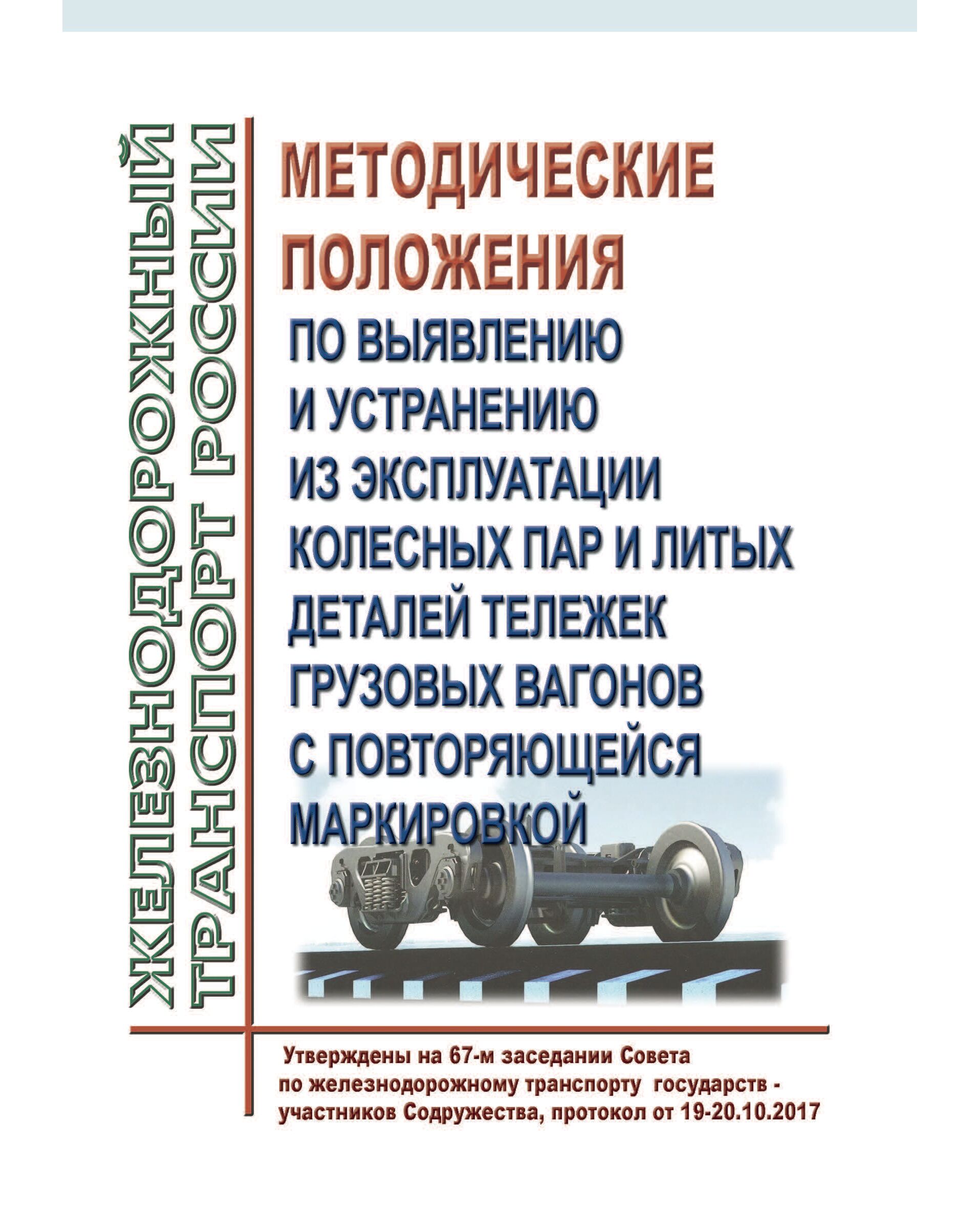 В настоящем документе сформулированы методические положения определяющие порядок выявления и устранения в эксплуатации колесных пар, боковых рам и надрессорных балок с повторяющейся индивидуальной нумерацией, включающей последовательное цифровое отображение идентификаторов маркировки, характеризующих предприятие изготовления детали, ее порядкового номера по системе нумерации предприятия изготовителя и двух последних цифр года изготовления.