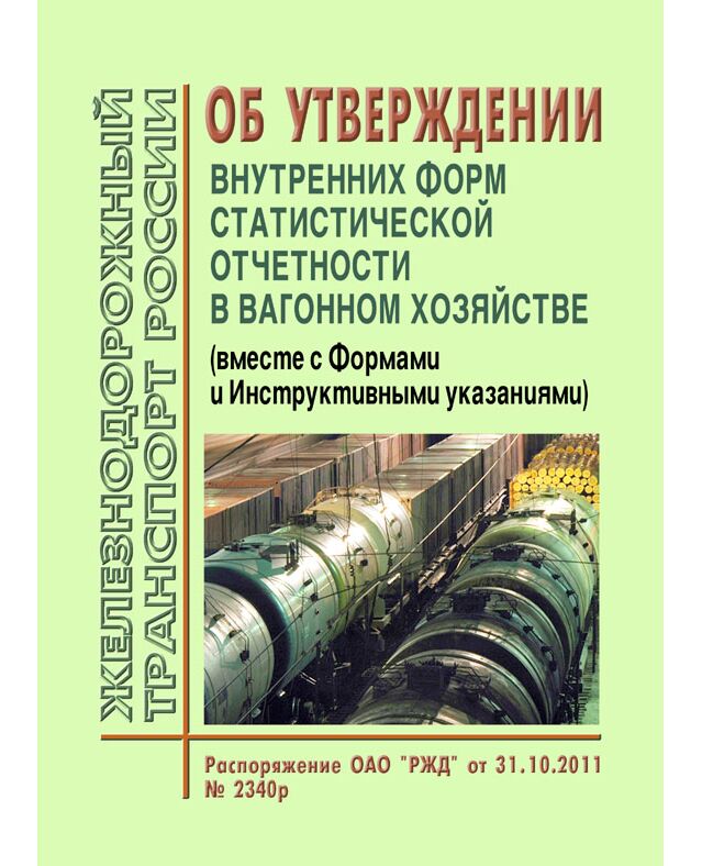 Распоряжением ОАО "РЖД" от 31.10.2011 № 2340р утверждены и введены в действие, начиная с отчета за декабрь 2011 года, прилагаемые внутренние формы статистической отчетности и инструктивные указания по их формированию.