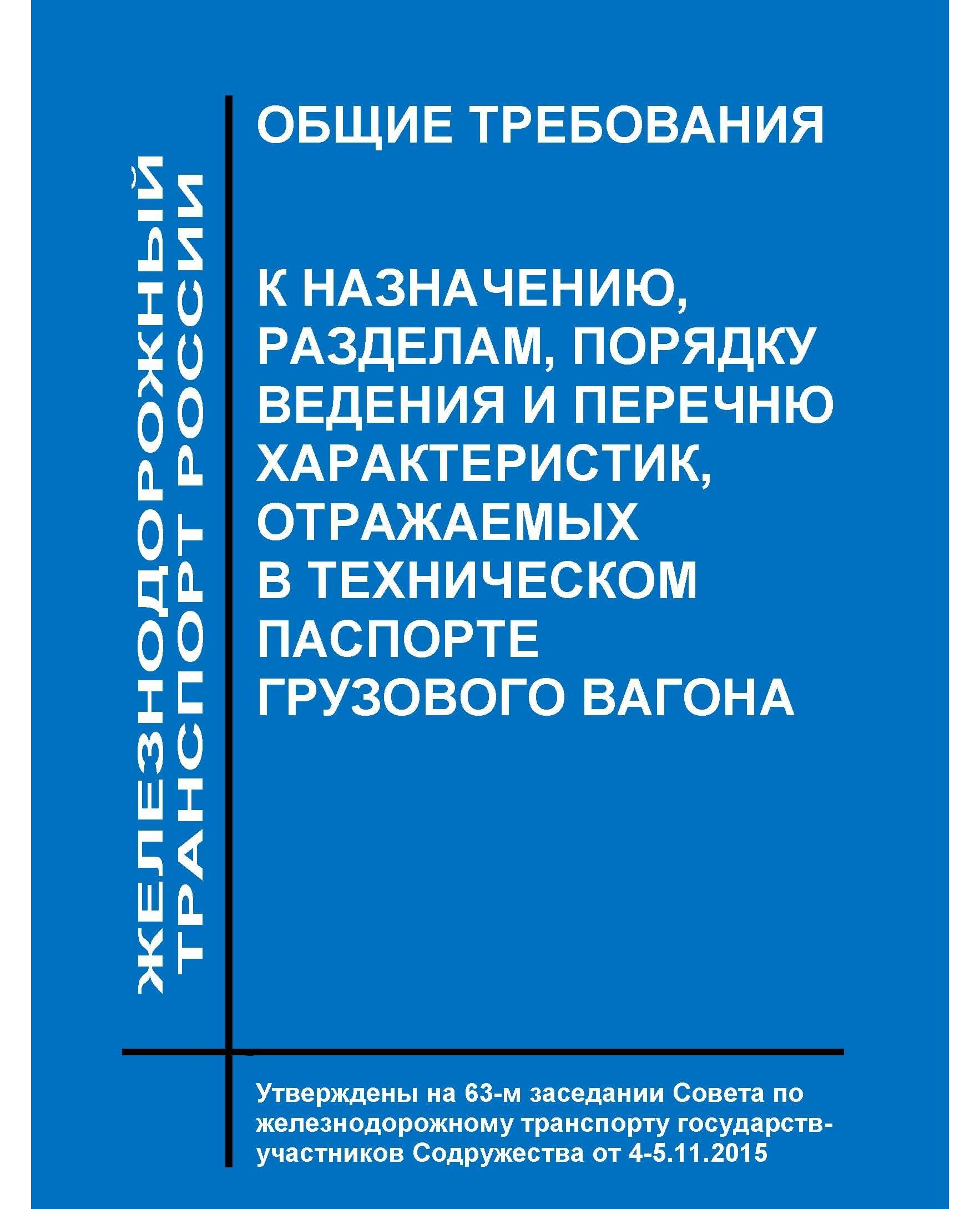 в Общих требованиях установлен порядок ведения и перечнь характеристик, отражаемых в техническом паспорте грузового вагона. Утверждены на 63-м заседании Совета по железнодорожному транспорту государств-участников Содружества от 4 - 5.11.2015