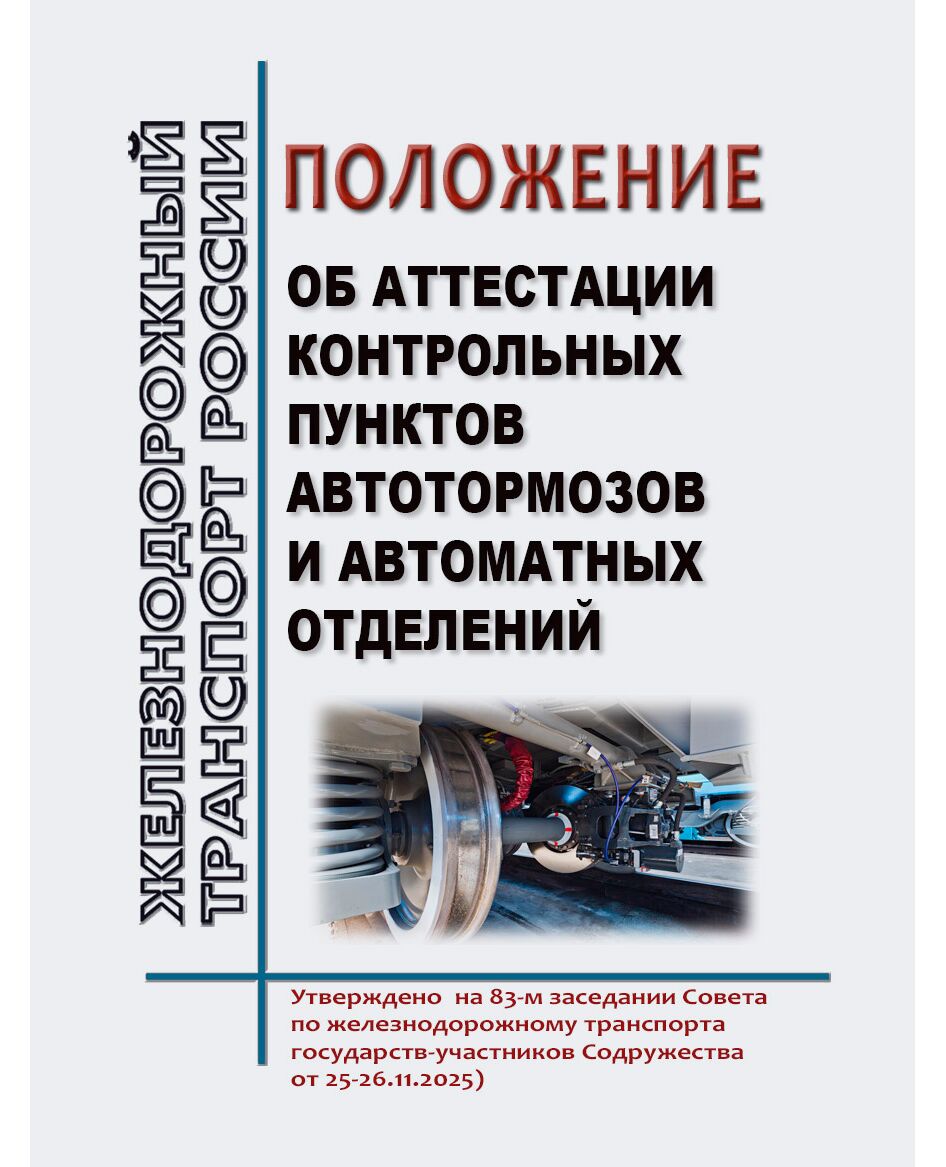 Положение разработано для руководства при проведении аттестации контрольных пунктов автотормозов и автоматных отделений для проверки и ремонта автотормозного оборудования вагонов, обращающихся в международном сообщении.