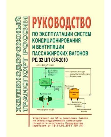 Руководство по эксплуатации систем кондиционирования и вентиляции пассажирских вагонов. РД 32 ЦЛ 034-2010. Утверждено на 54-м заседании Совета по железнодорожному транспорту государств-участников содруженства (протокол от 18-19.05.2011)
