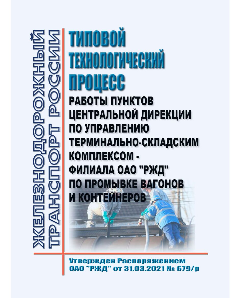 Типовой технологический процесс работы пунктов Центральной дирекции по управлению терминально-складским комплексом - филиала ОАО "РЖД" по промывке вагонов и контейнеров. Утвержден Распоряжением ОАО "РЖД" от 31.03.2021 № 679/р