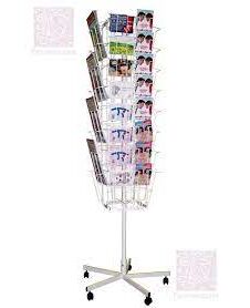 Стойка для печатной продукции на роликах (буклетница), 32 проволочных кармана формата А4, высота 1,9м, каркас – черный, карманы - хром
