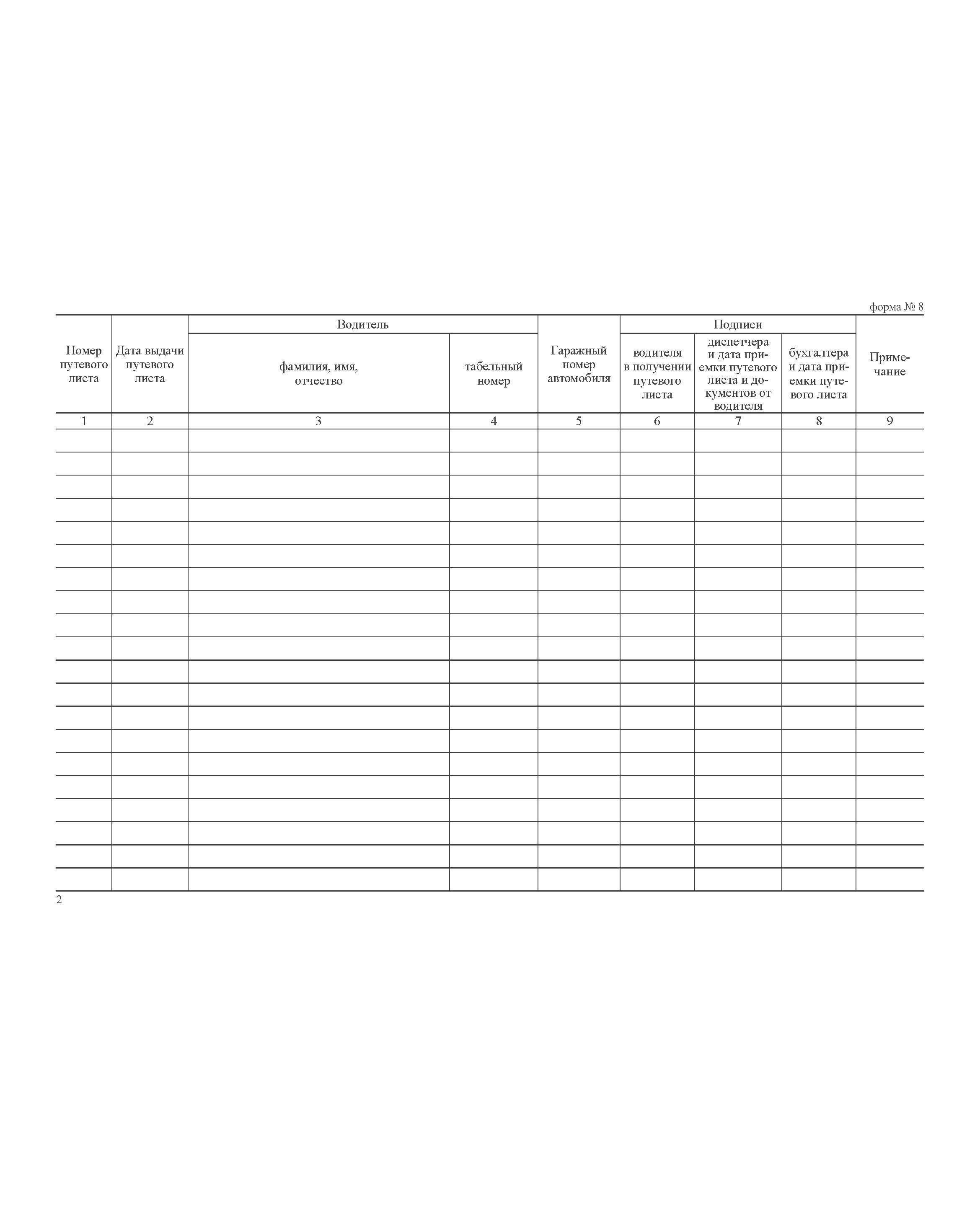 Журнал учета движения путевых листов. Типовая межотраслевая форма № 8. Утверждена Постановлением Госкомстата России от 28.11.1997 № 78 (прошитый, 100 страниц)