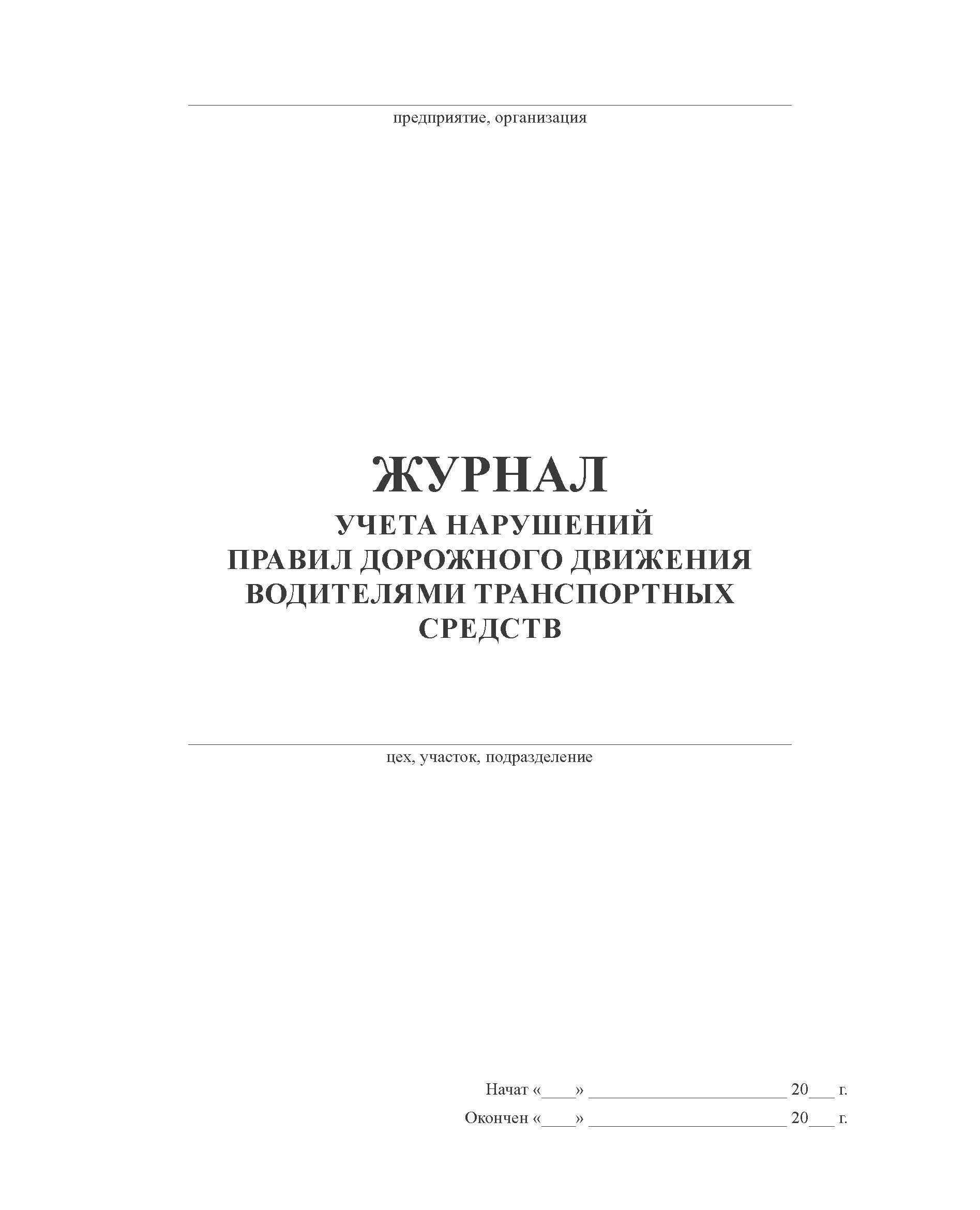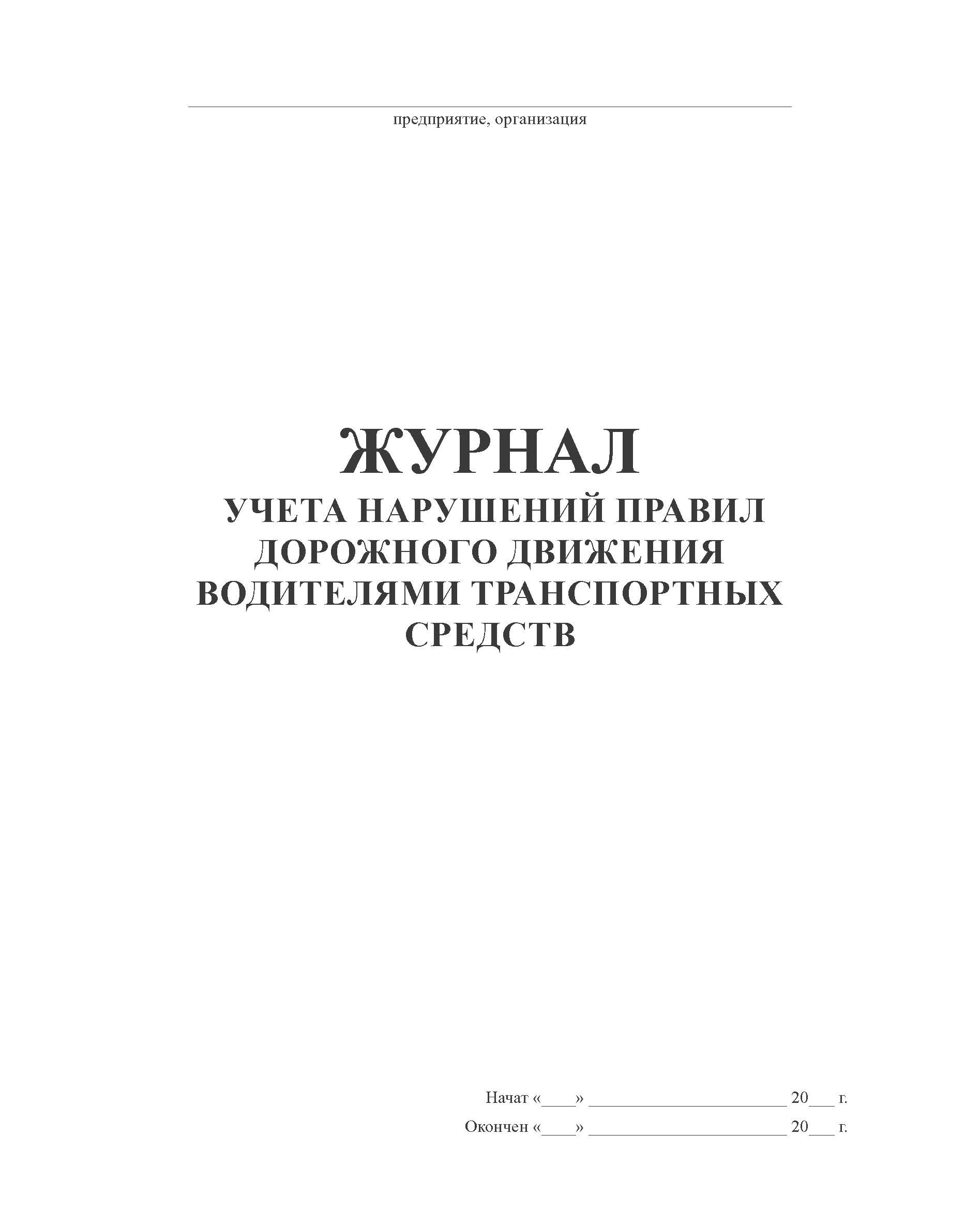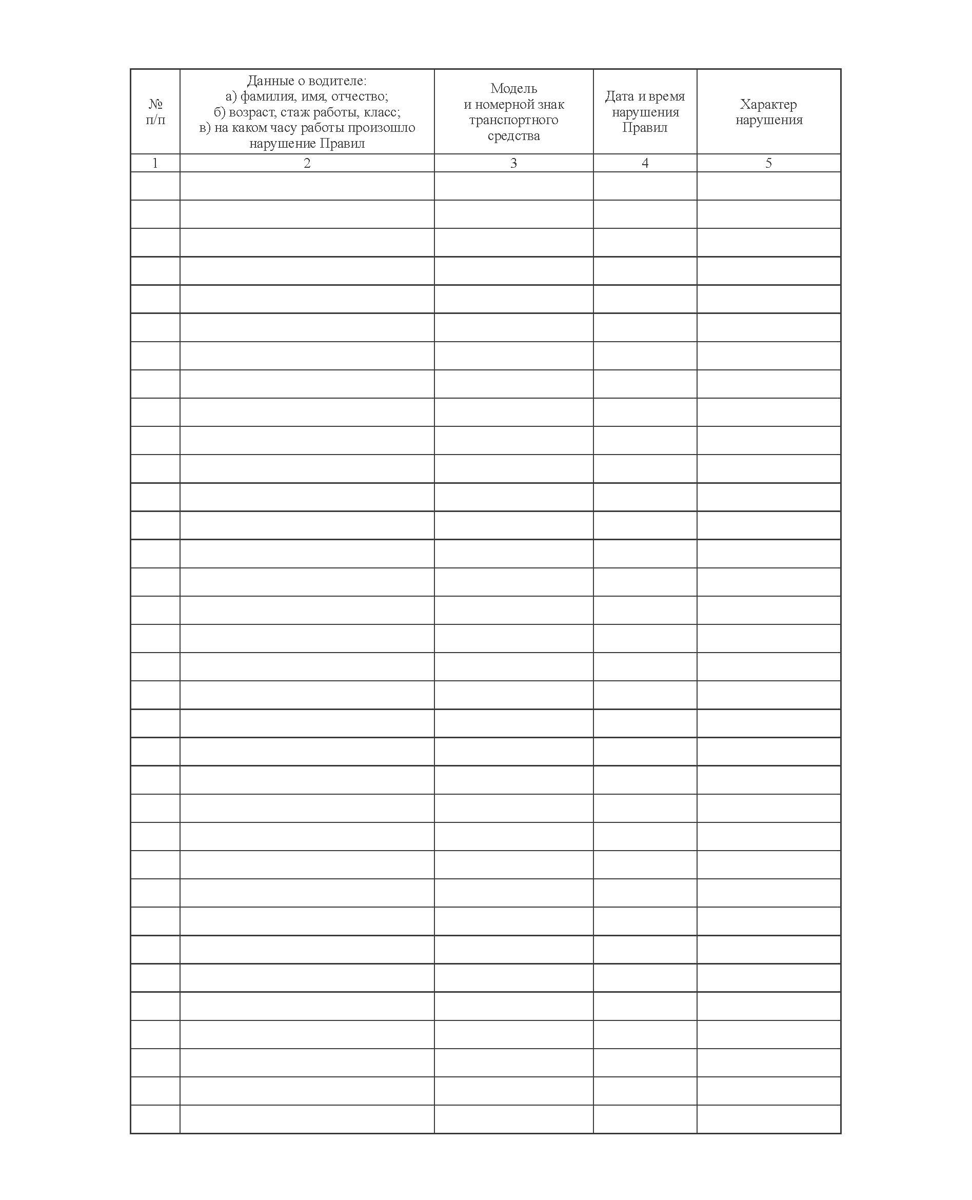 Форма журнала учета нарушений Правил дорожного движения водителями транспортных средств соответствует Приложению 14 к РД 39-22-637-81 Система организации и управления комплексом работ по обеспечению безопасности дорожного движения на транспорте нефтяной промышленности.
