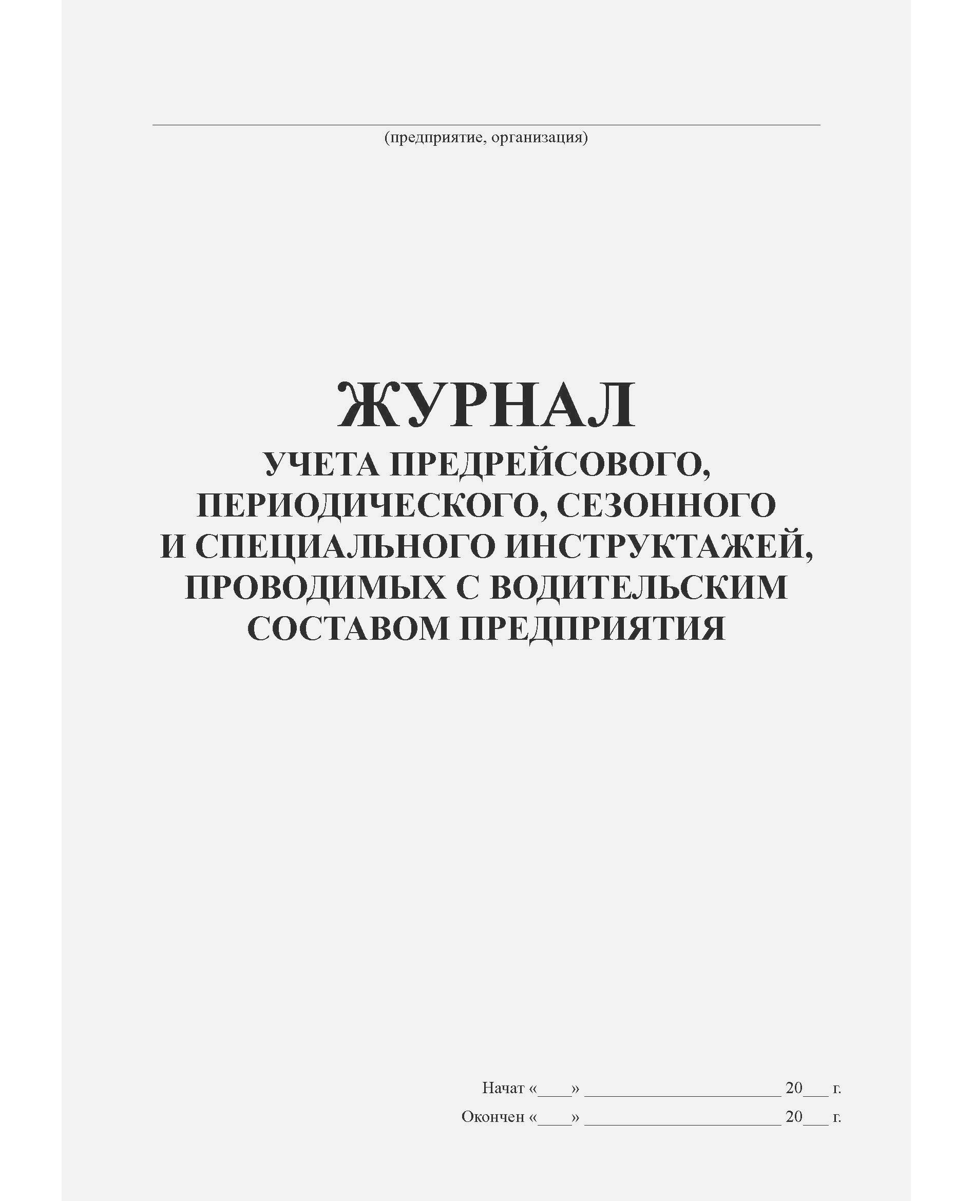 Журнал учета предрейсового, периодического, сезонного и специального инструктажей, проводимых с водительским составом предприятия, организации (100 стр., прошитый)