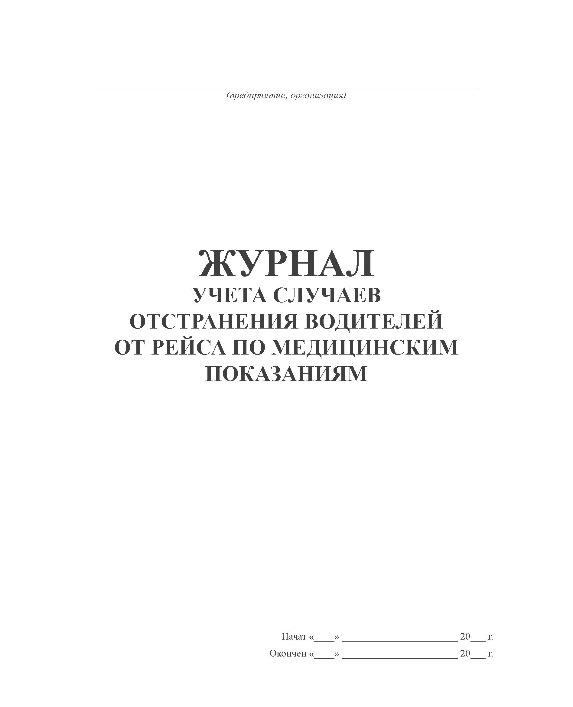 Журнал учета случаев отстранения водителей от рейса по медицинским показаниям (прошитый, 100 страниц)