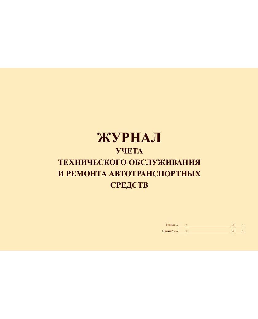 Журнал учета технического обслуживания и ремонта автотранспортных средств (прошитый, 100 страниц)
