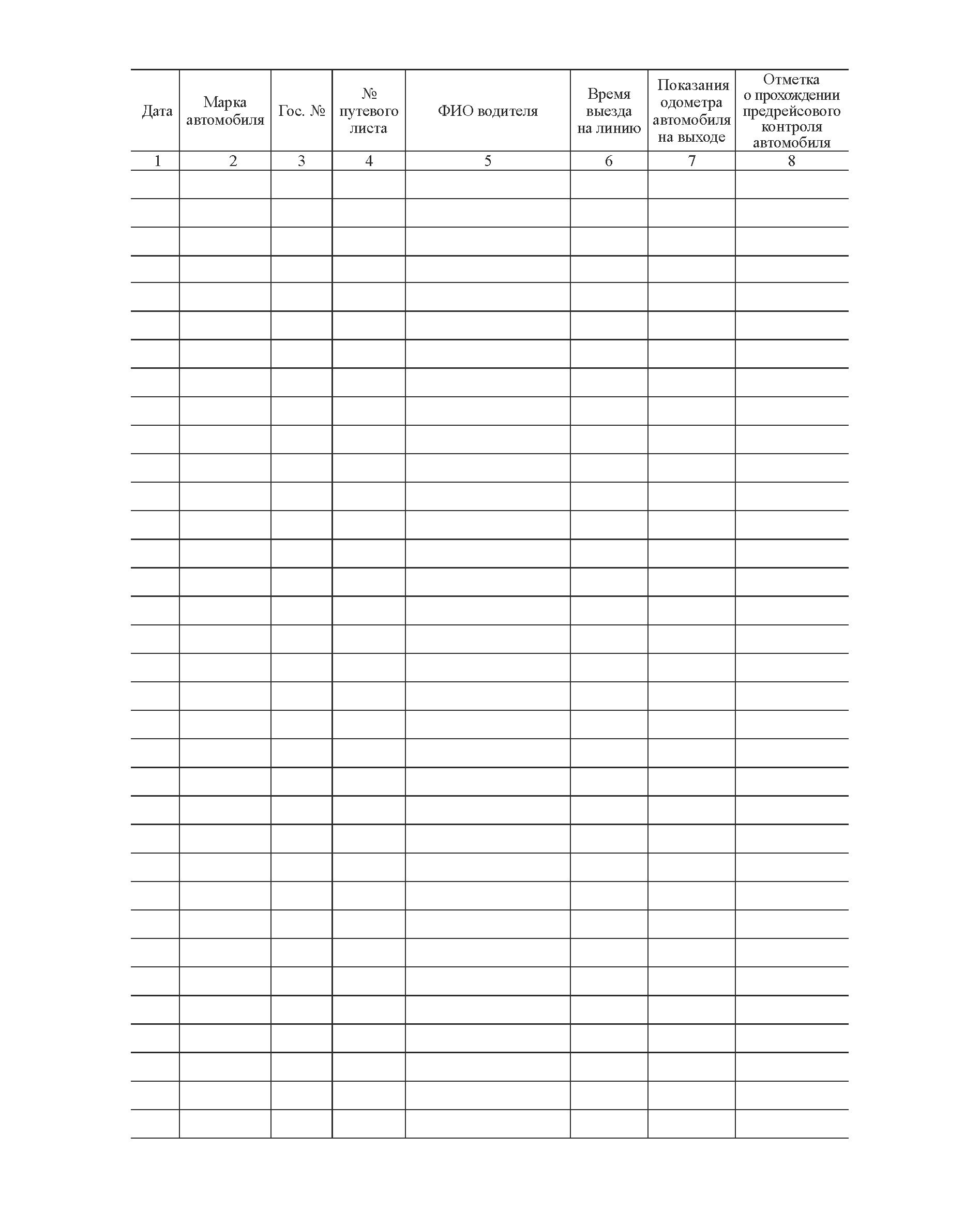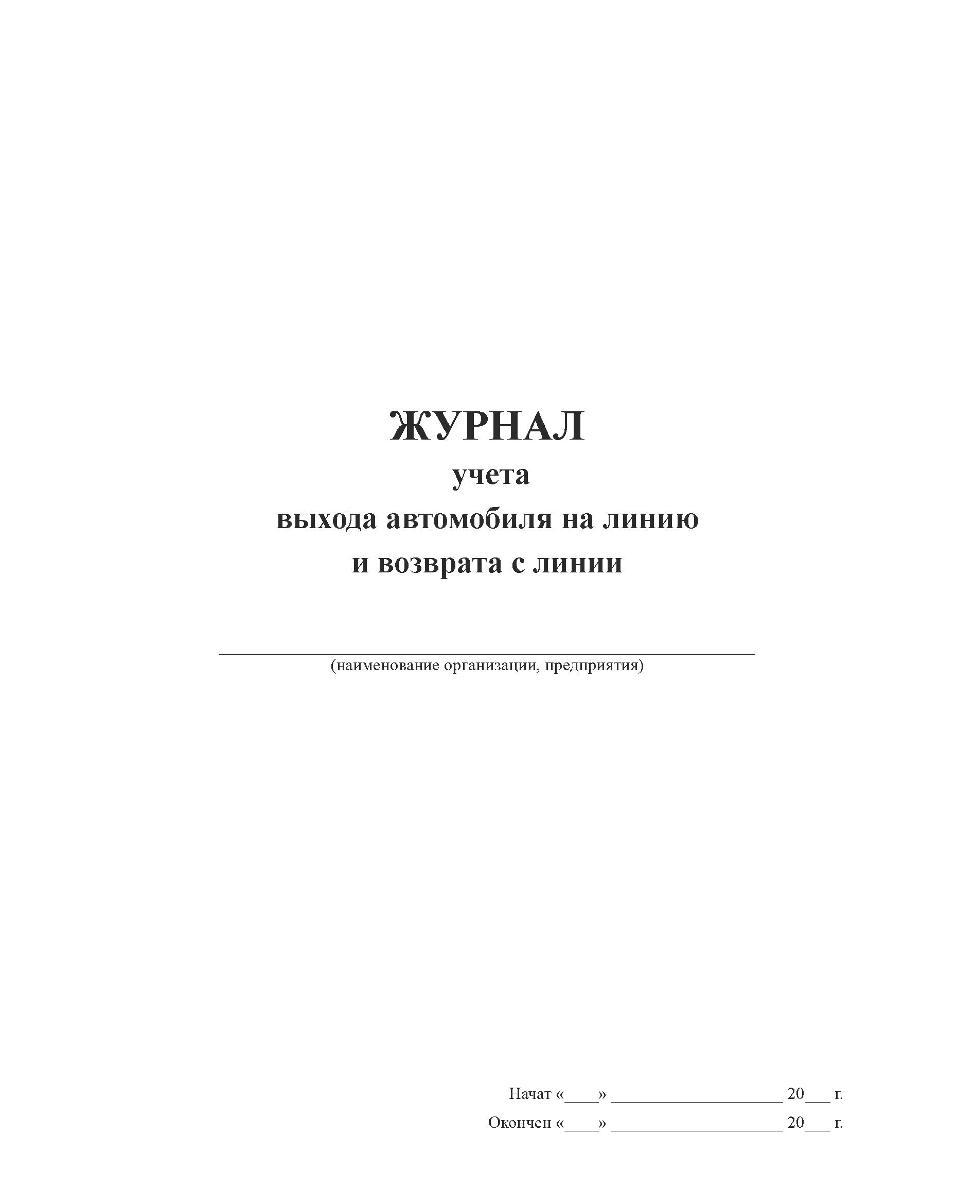 Журнал учета выхода автомобиля на линию и возврата с линии (прошитый, 100 страниц, мягкий синий бумвинил с наклейкой)