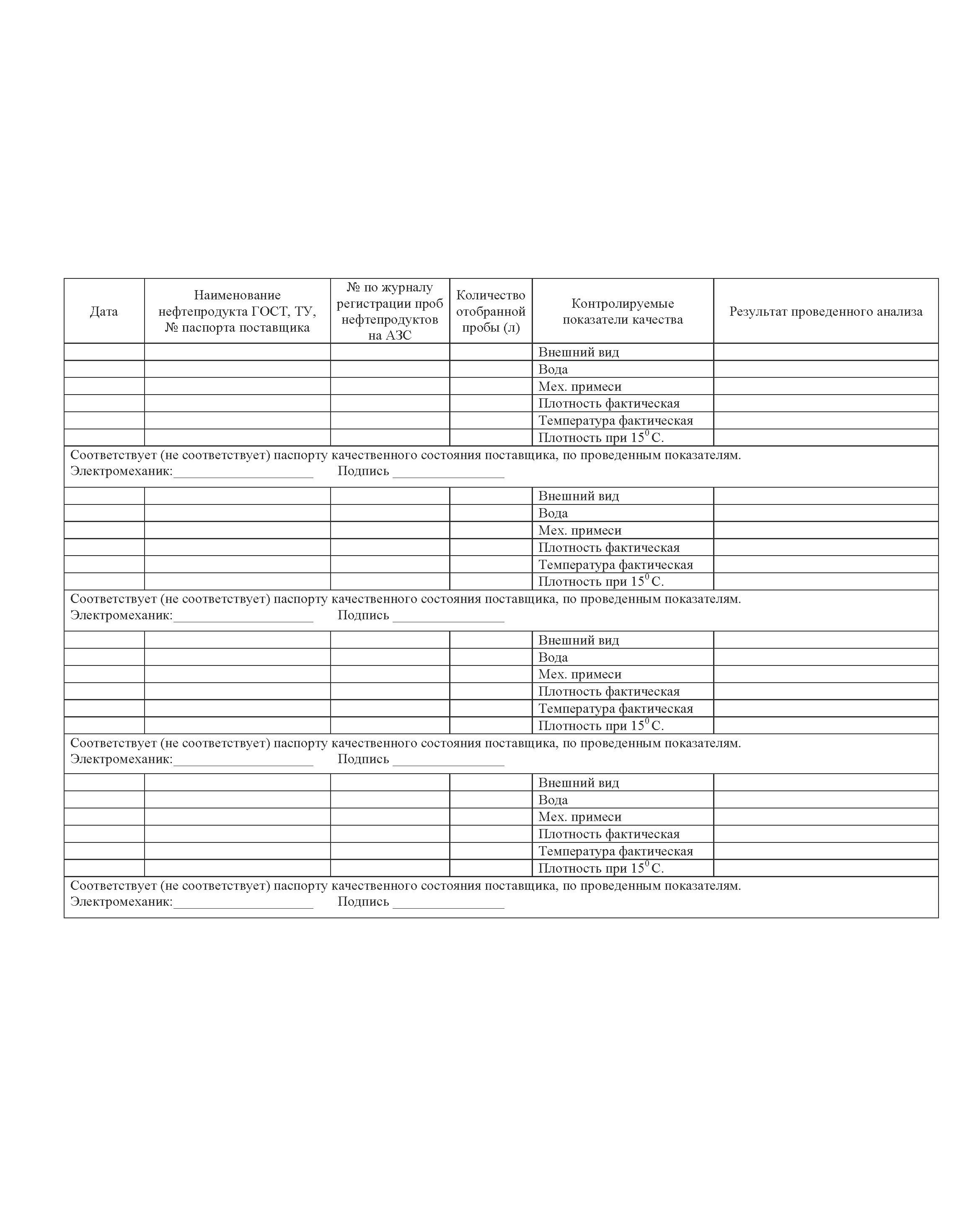 Журнал показателей качества нефтепродуктов на АЗС (прошитый, 100 страниц)