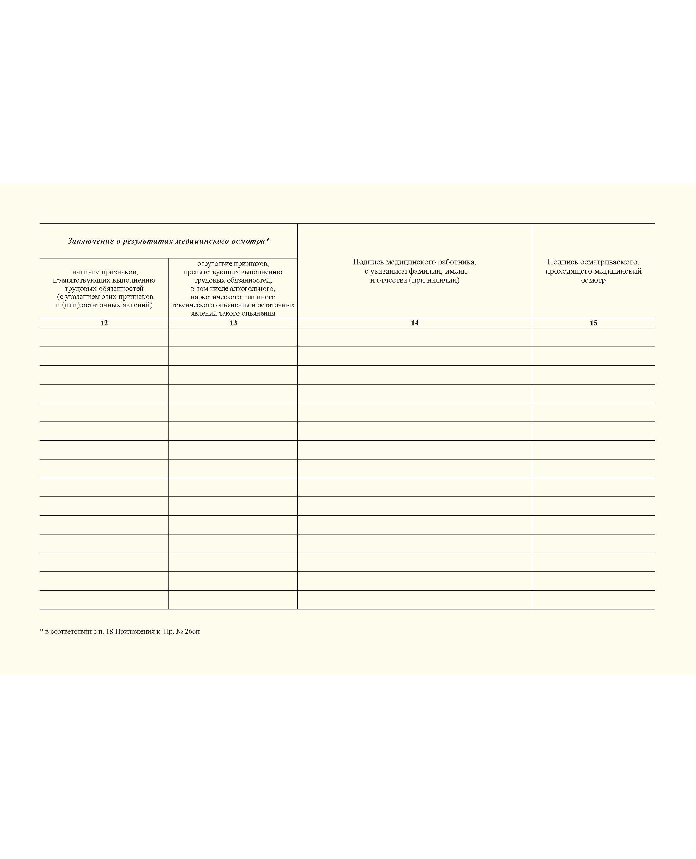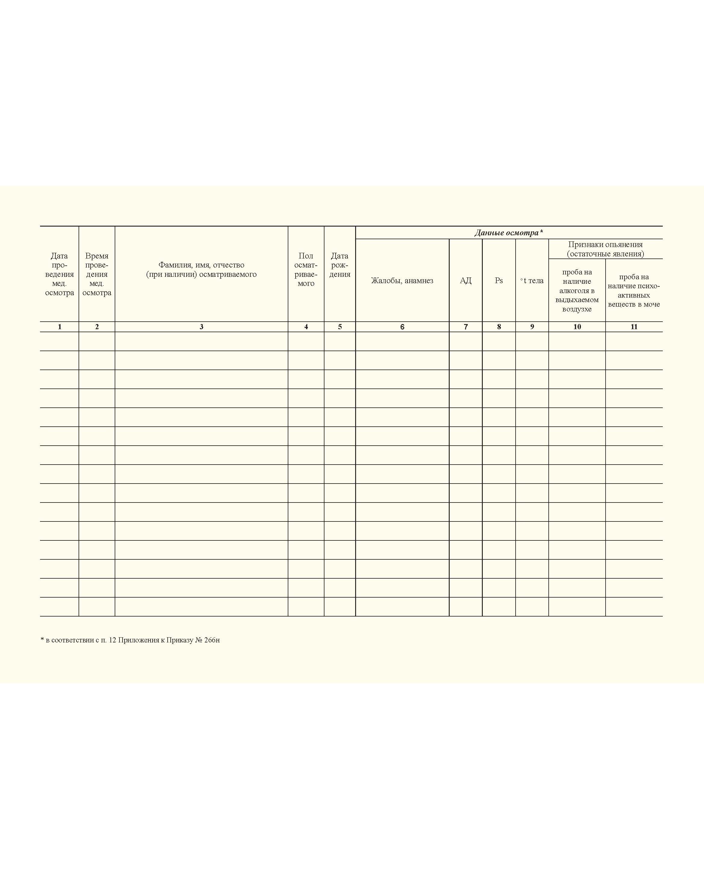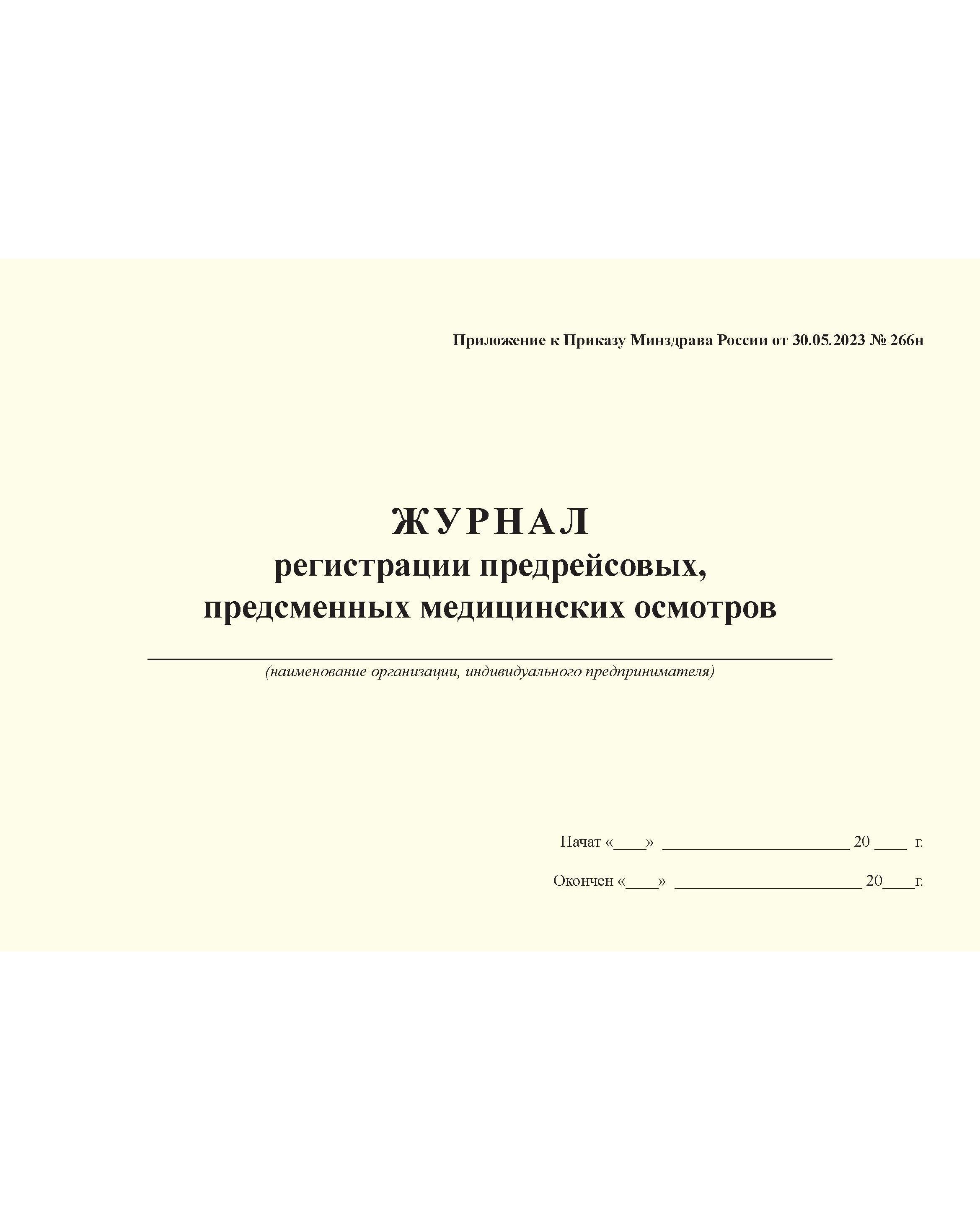 Журнал регистрации предрейсовых, предсменных медицинских осмотров. Приложение к Приказу Минздрава России от 30.05.2023 № 266н (100 стр., прошитый, альбомный) (15 колонок)