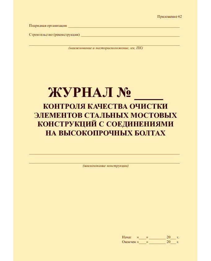Журнал контроля качества очистки элементов стальных мостовых конструкций с соединениями на высокопрочных болтах. (100 страниц, прошит)