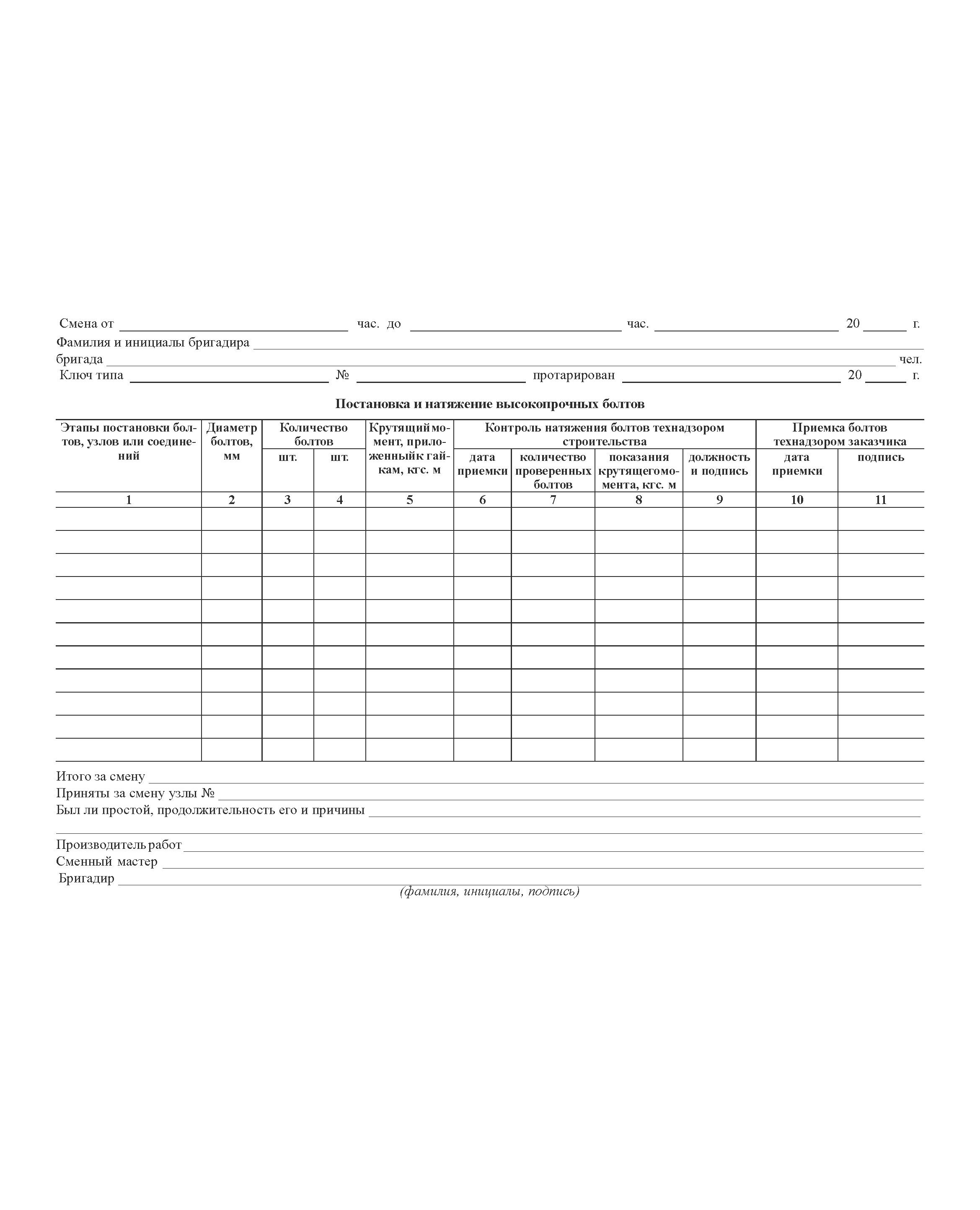 Журнал постановки высокопрочных болтов. Форма N Ф-59 (утвержденная распоряжением Росавтодора от 23.05.2002 №ИС-478-р) (100 страниц, прошитый).