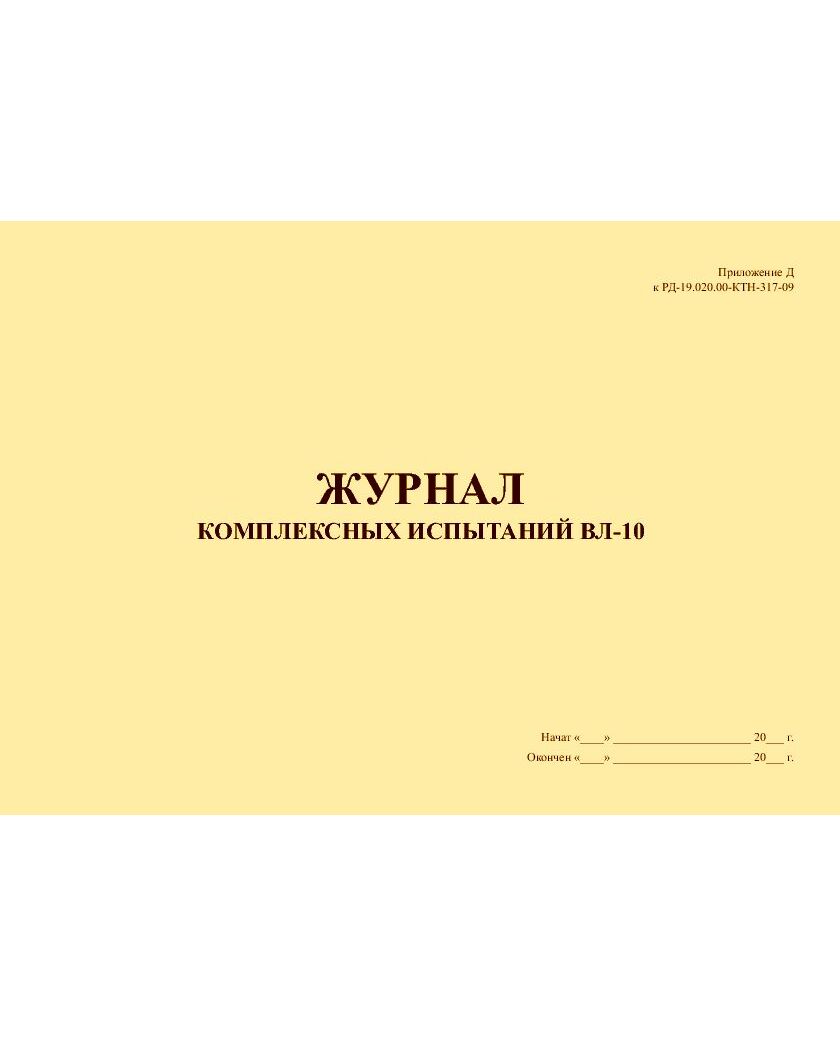 Журнал комплексных испытаний ВЛ-10. Приложение Д к РД-19.020.00-КТН-317-09 «Типовая программа комплексного опробования вдольтрассовой ВЛ 6-10 кВ» (альбомный, прошитый, 100 страниц)