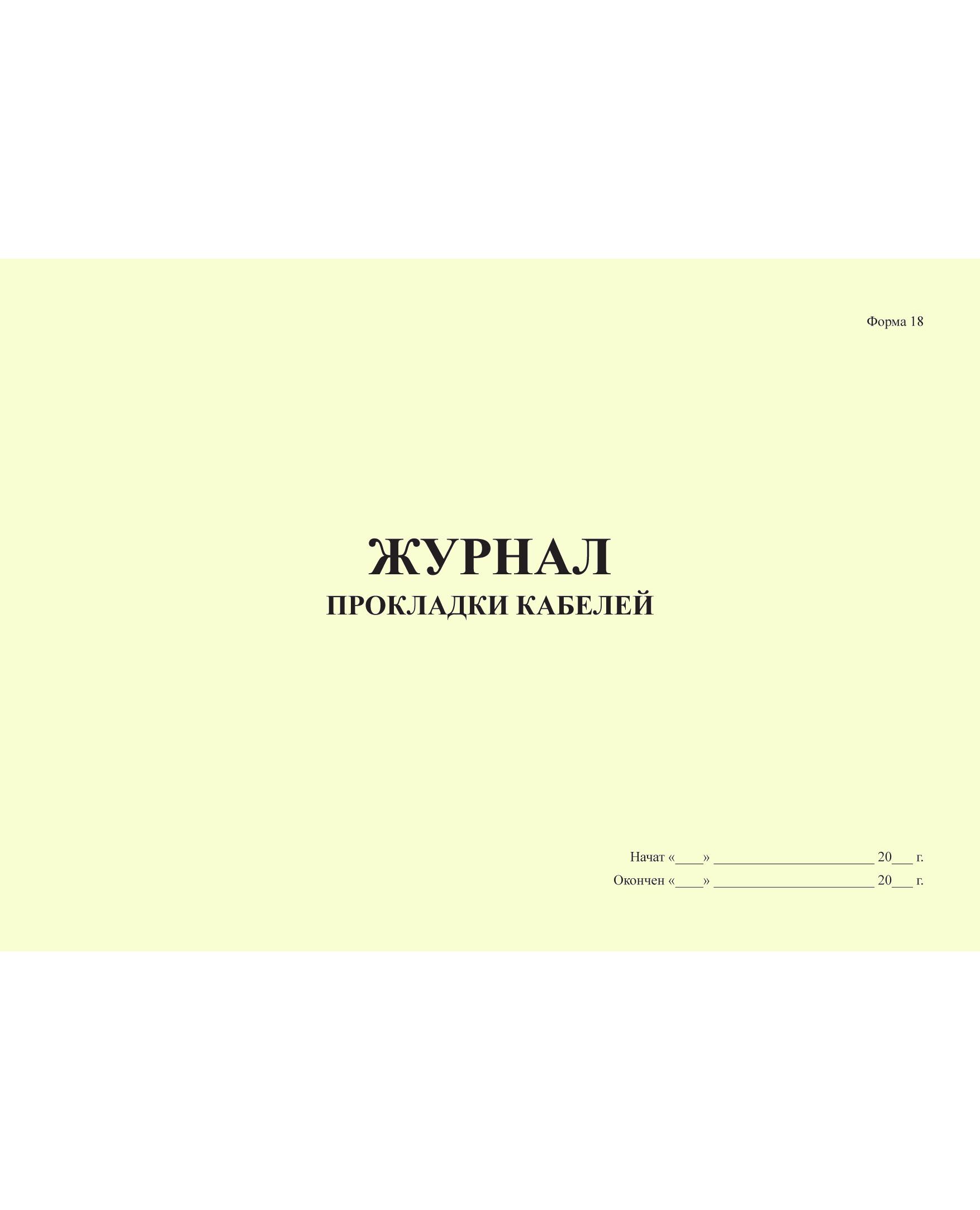 Журнал прокладки кабелей. Форма 18. Приложение к Инструкции по оформлению приемосдаточной документации по электромонтажным работам (И 1.13-07) (альбомный, прошитый, 100 страниц)
