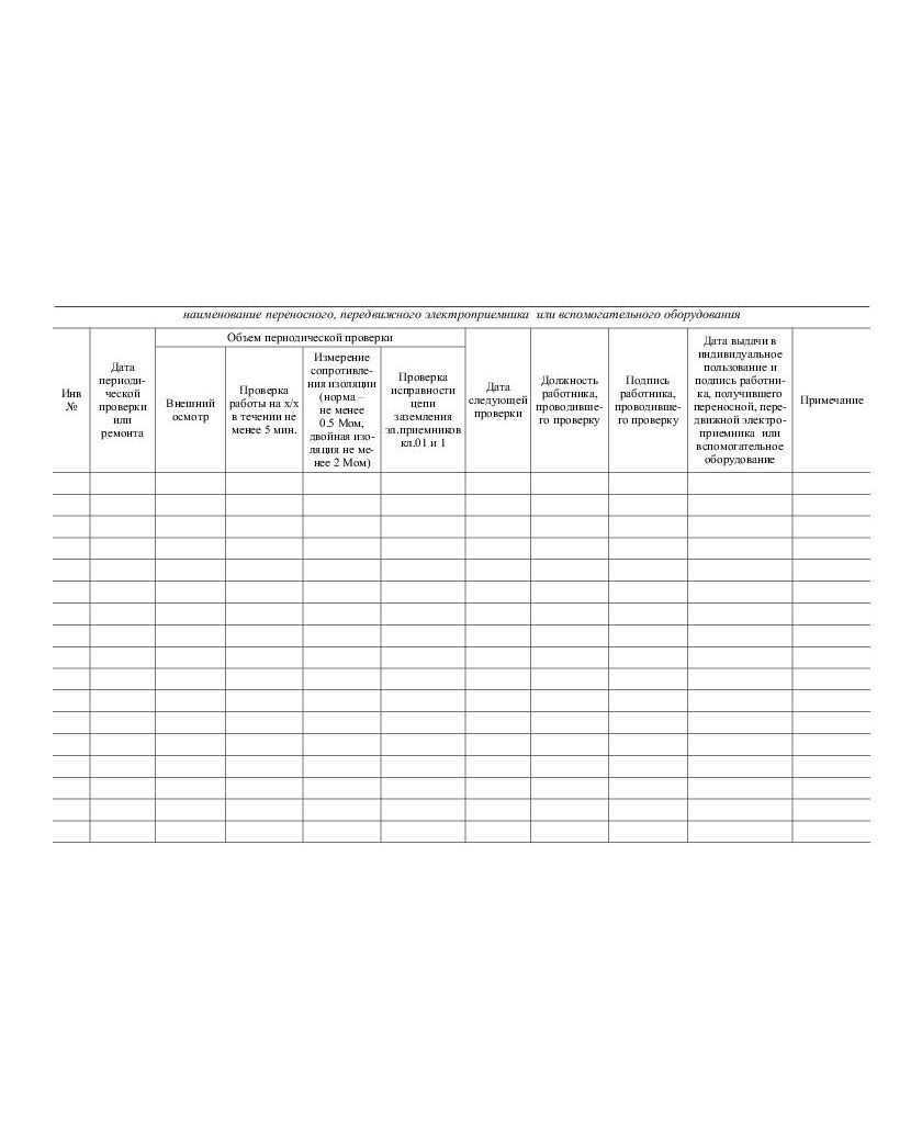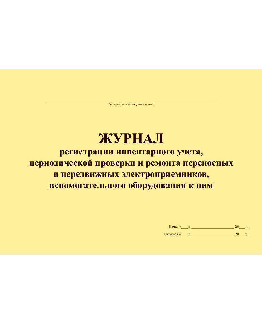 Журнал регистрации инвентарного учета, периодической проверки и ремонта переносных и передвижных электроприемников, вспомогательного оборудования к ним (альбомный, прошитый, 100 страниц)