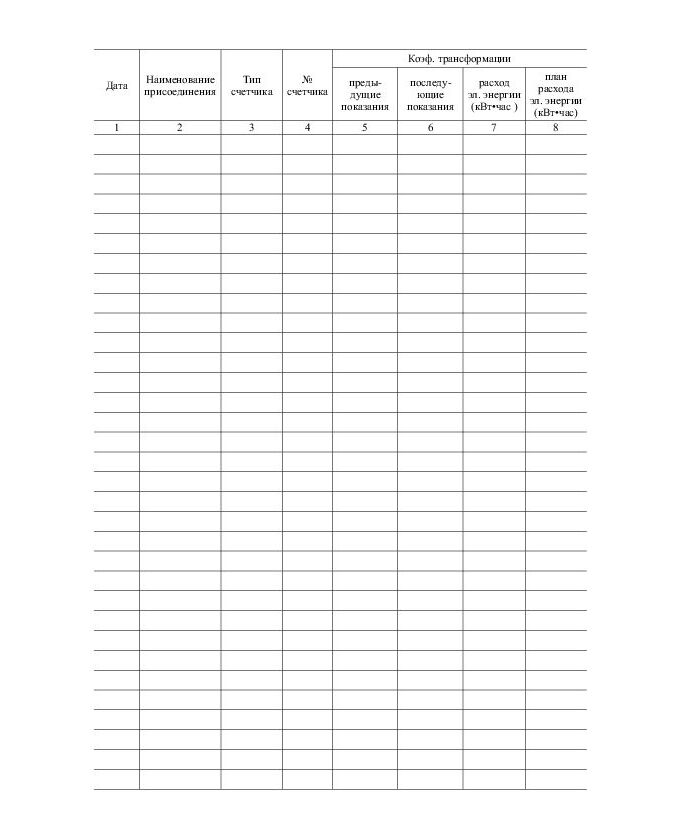 Журнал учета электрической энергии (книжный, прошитый, 100 страниц)