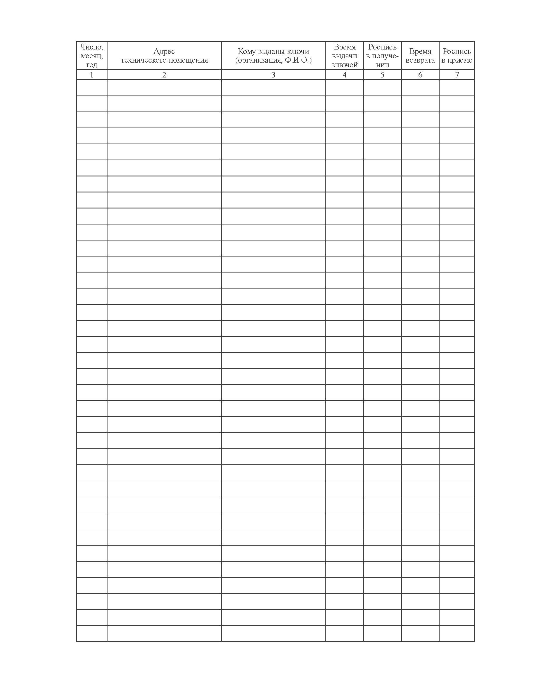 Журнал учета выдачи ключей от технических помещений.