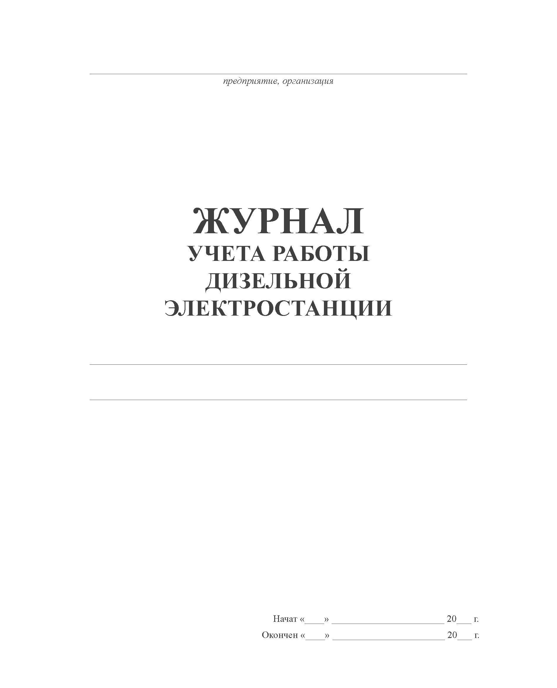 Журнал учета работы дизельной электростанции (книжный, прошитый, 100 страниц)