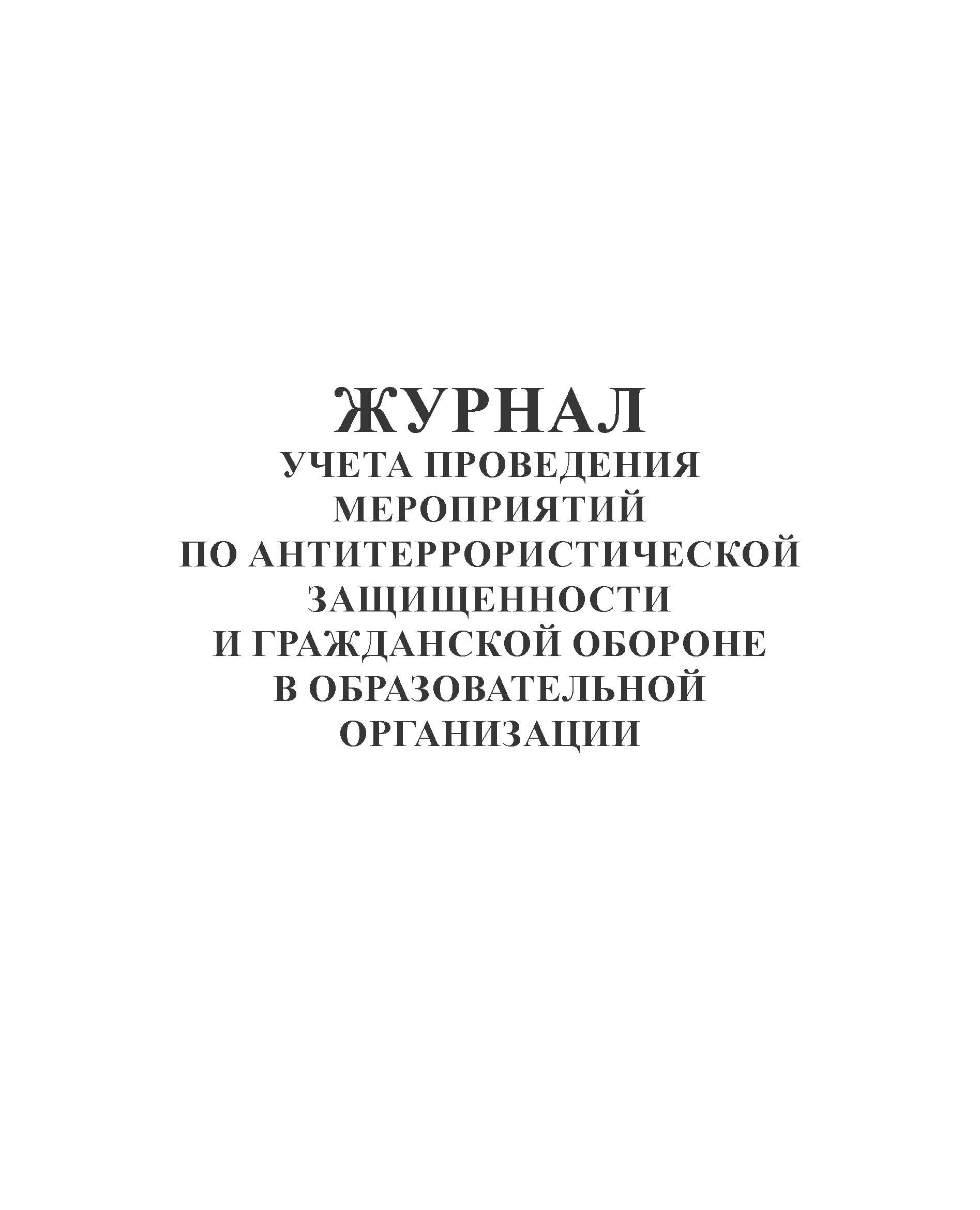 Журнал учета проведения мероприятий по антитеррористической защищенности и гражданской обороне в образовательной организации (100 страниц, прошитый)