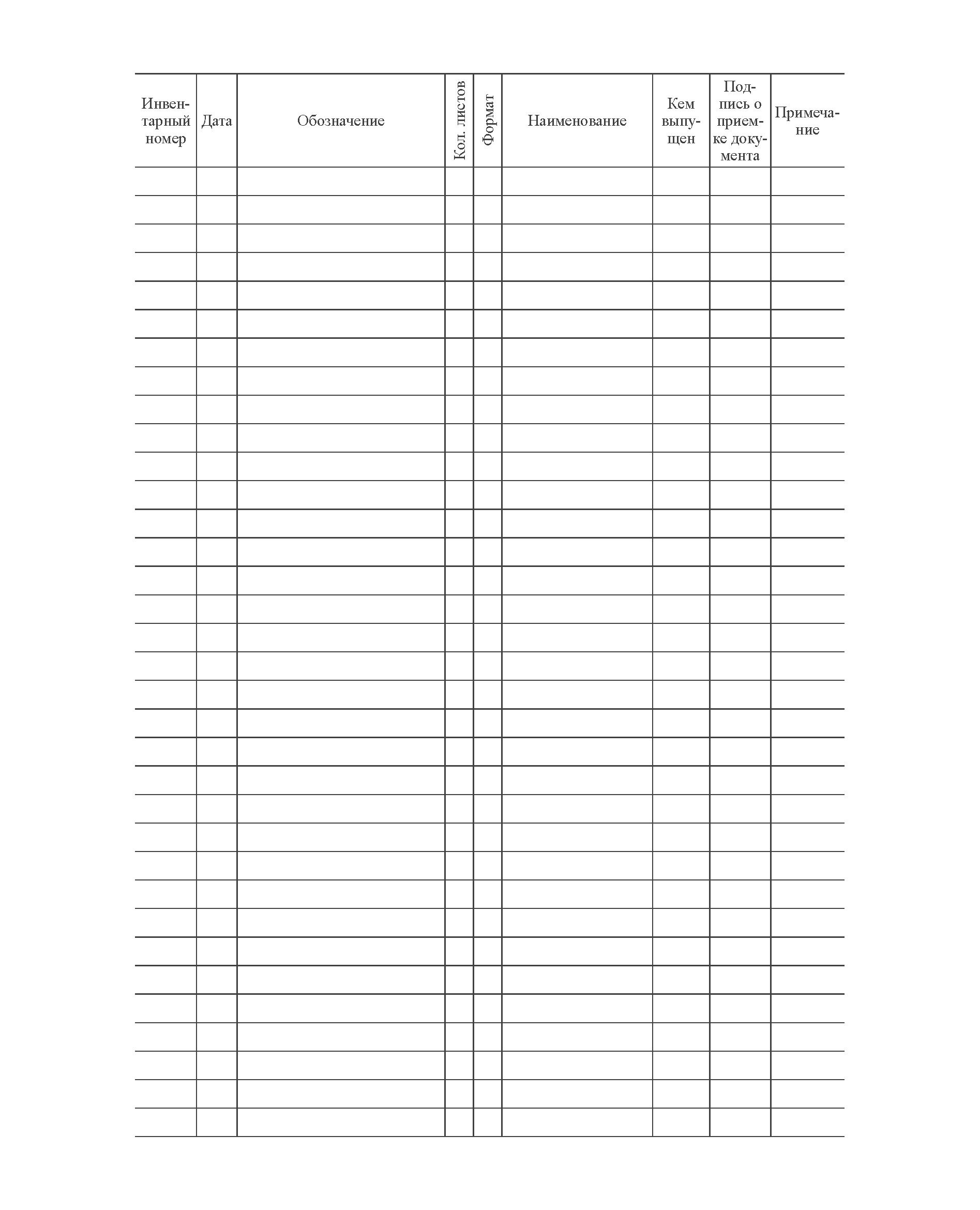 Инвентарная книга (книжная, прошитая, 100 страниц). Форма 1 Приложения Б к ГОСТ 2.501-2013 (Единая система конструкторской документации. Правила учета и хранения)