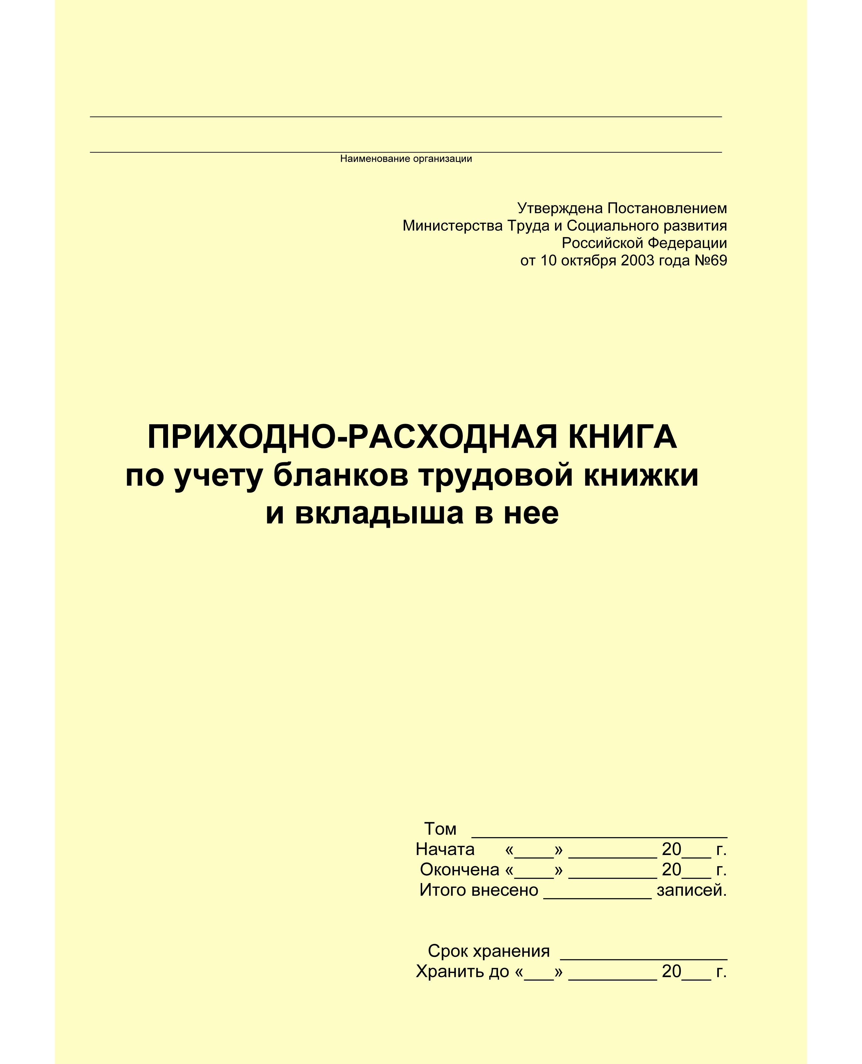 Приходно-расходная книга по учету бланков трудовой книжки – это книга, в которой регистрируются (учитываются) сведения обо всех операциях, связанных с получением и расходованием бланков трудовой книжки и вкладыша в нее, с указанием серии и номера каждого бланка.