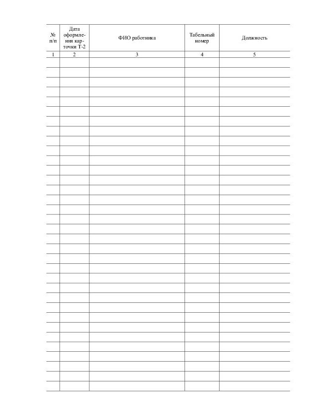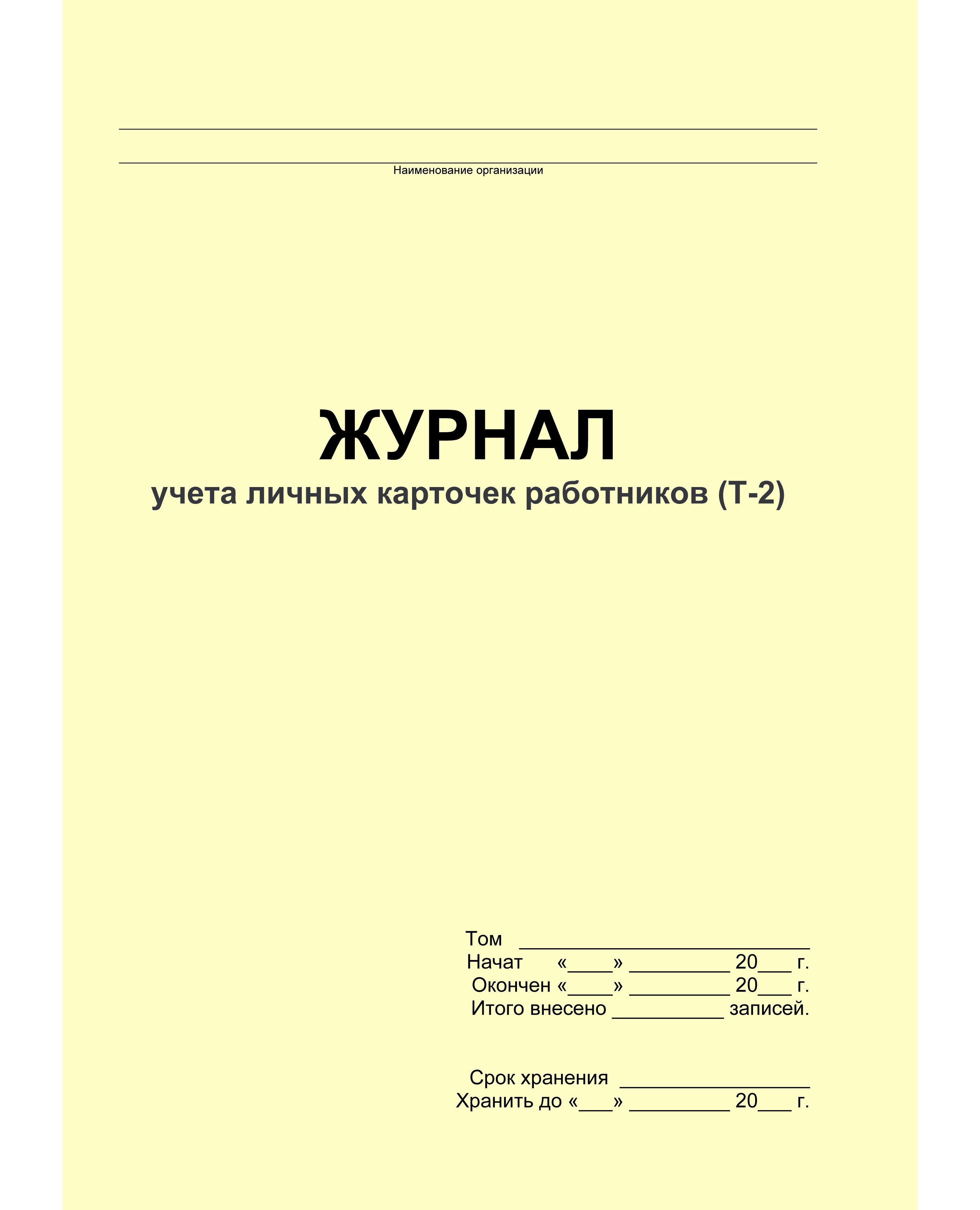 Журнал учета личных карточек работников (Т-2) - применяется для регистрации Личных карточек работников, оформляемых при приеме новых сотрудников в организацию.