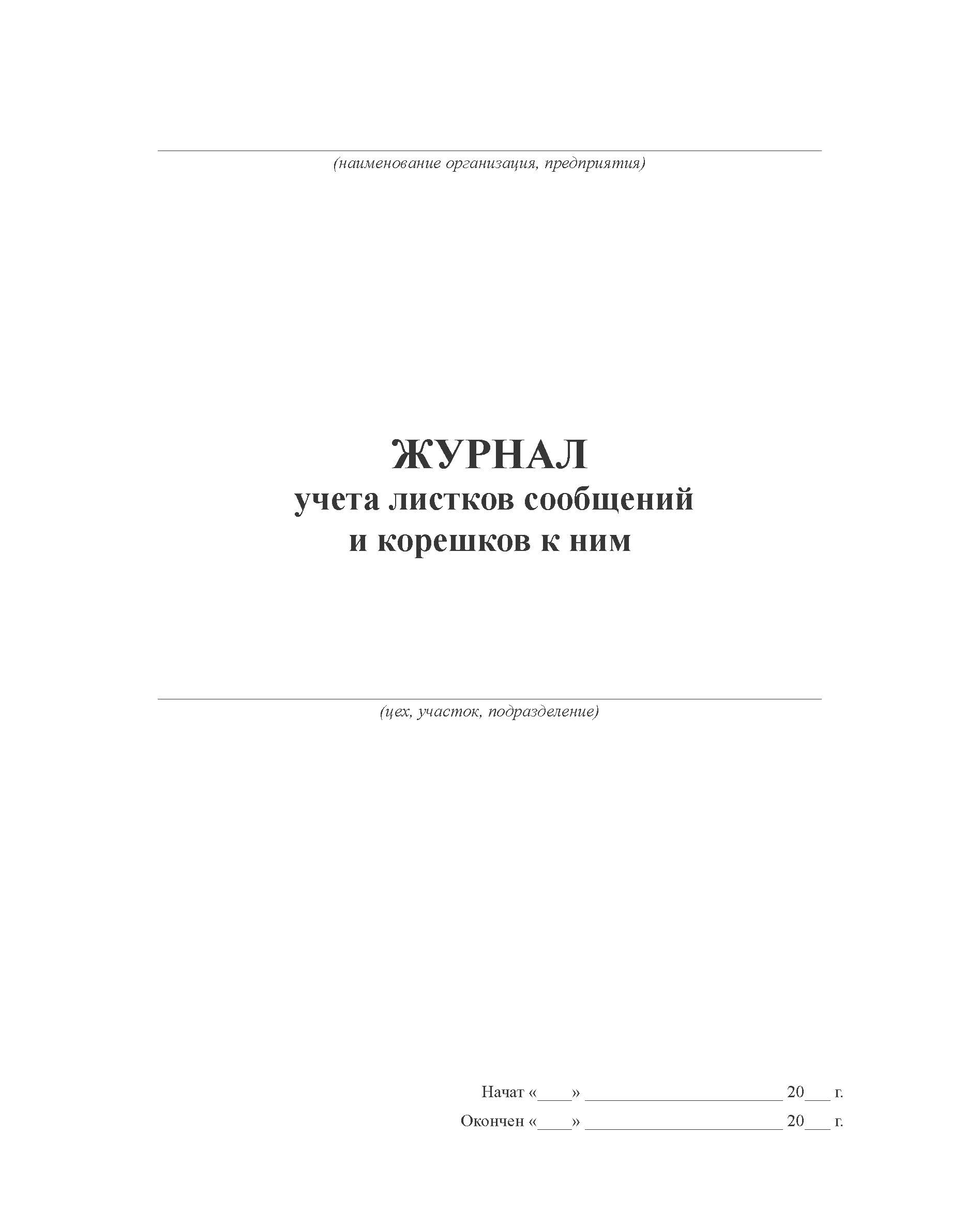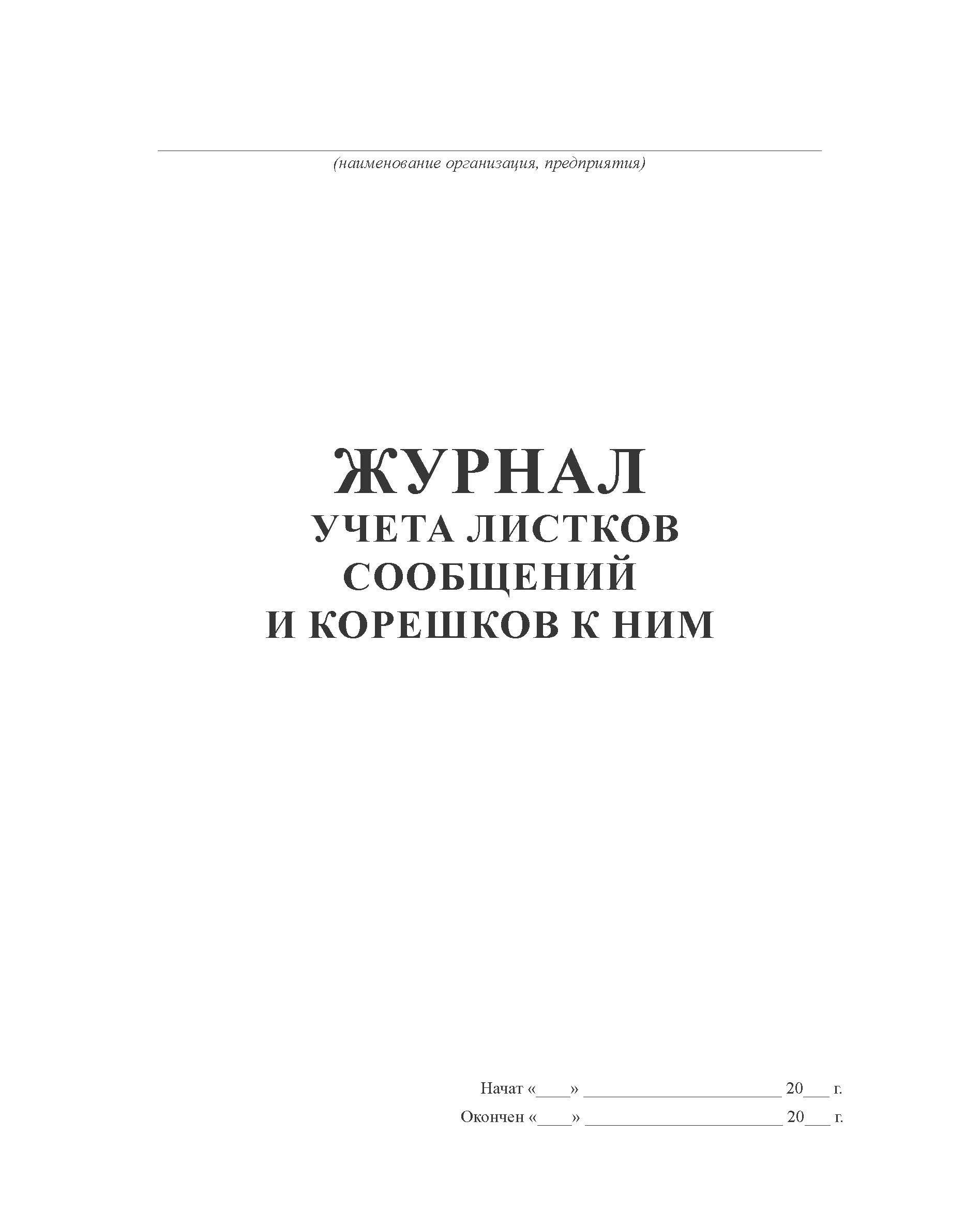 Журнал учета листков сообщений и корешков к ним (100 стр, прошит)