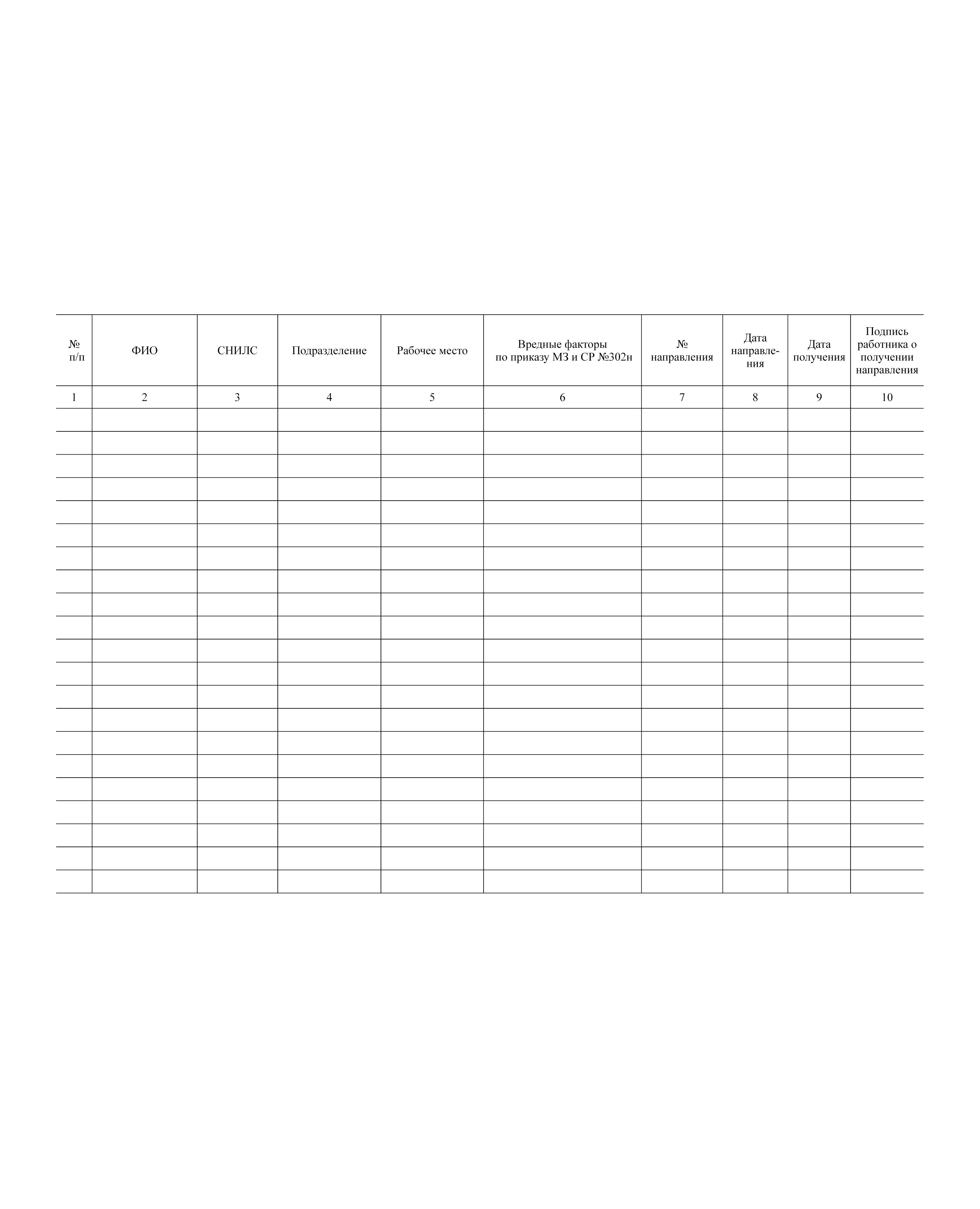 Журнал учета направлений на ПМО и заключений о профпригодности