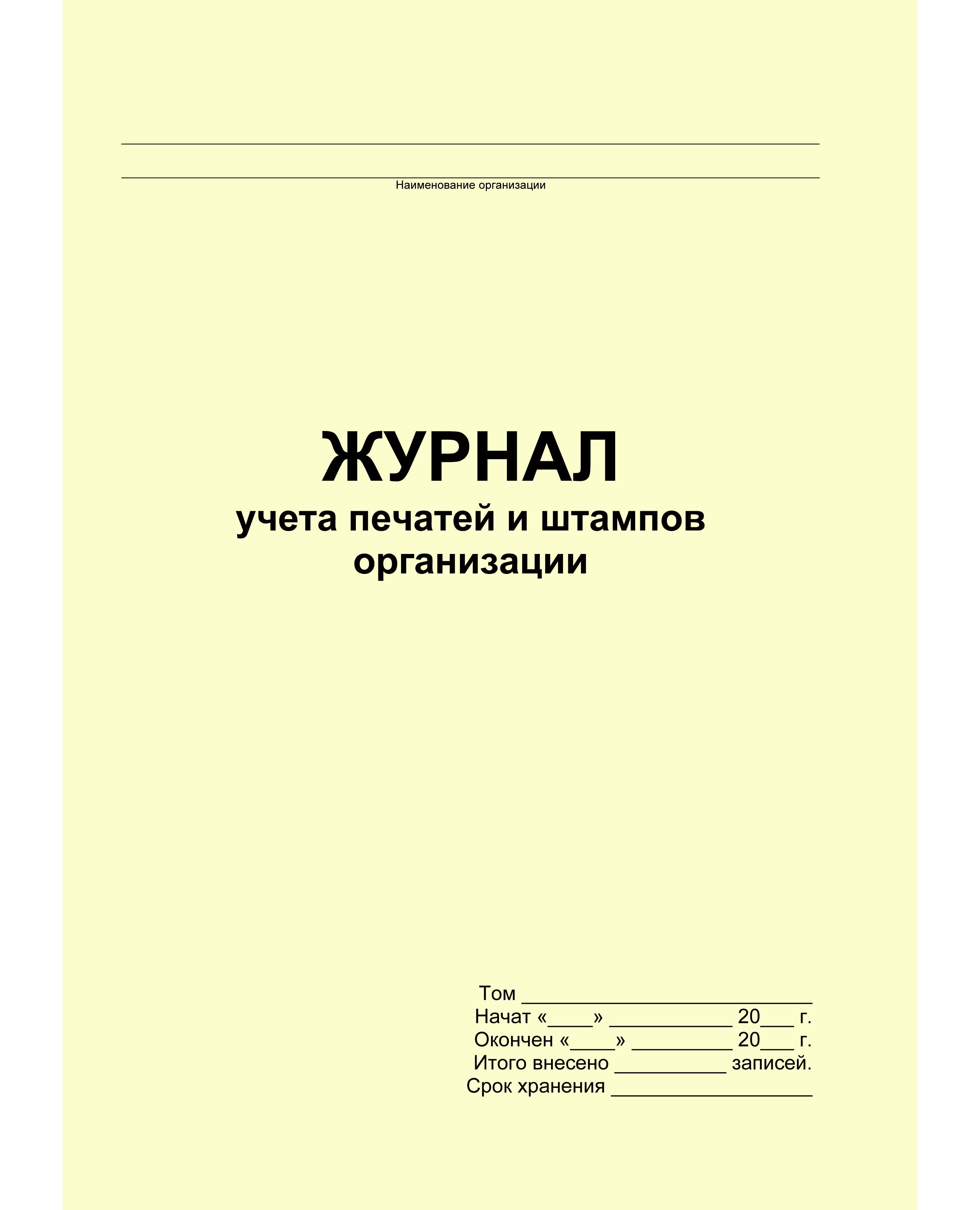 Журнал учета печатей и штампов организации - применяется для учета поступления, выдачи, возврата и уничтожения печатей и штампов организации с проставлением их оттисков.