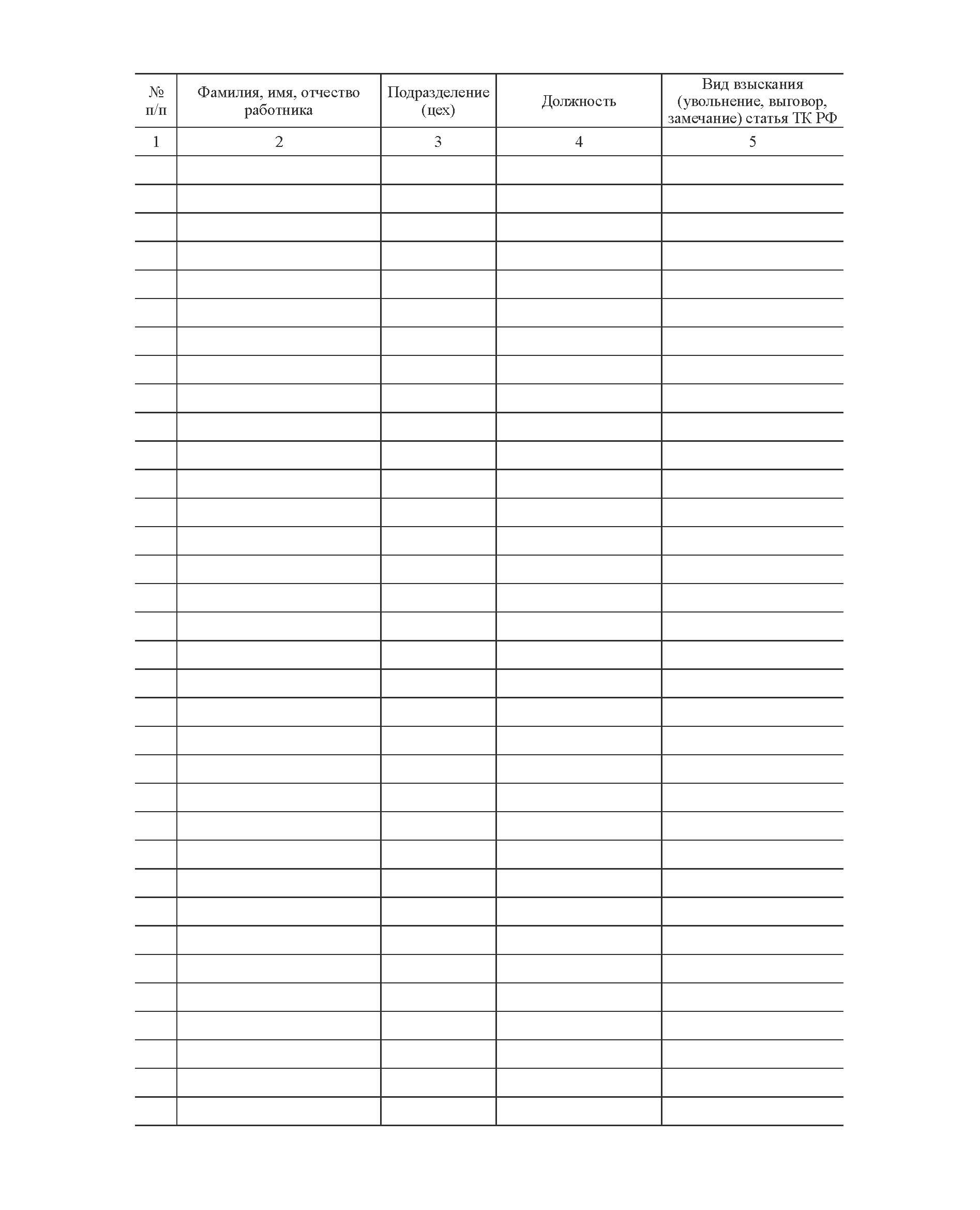 Журнал учета состояния трудовой дисциплины работников - применяется для регистрации дисциплинарных взысканий работников