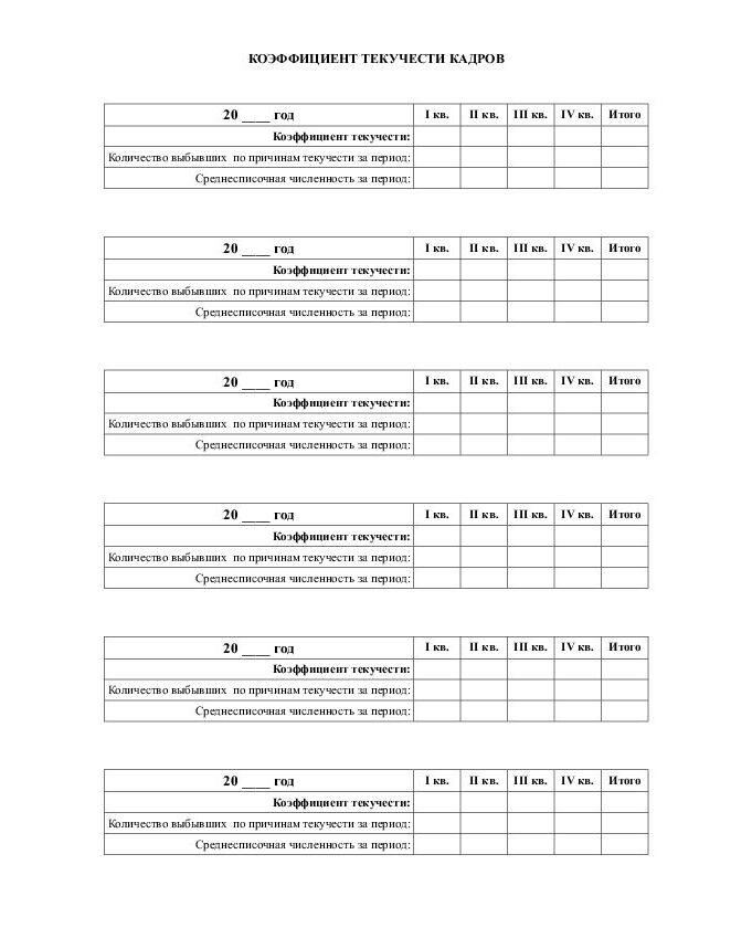 Коэффициент текучести кадров - отношение числа уволенных работников предприятия, выбывших за данный период по причинам текучести (по собственному желанию, за прогулы, за нарушение техники безопасности, самовольный уход и т.п. причинам, не вызванным производственной или общегосударственной потребностью) к среднесписочной численности за тот же период.
