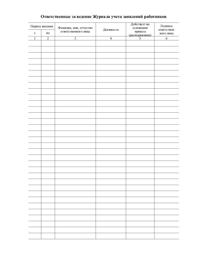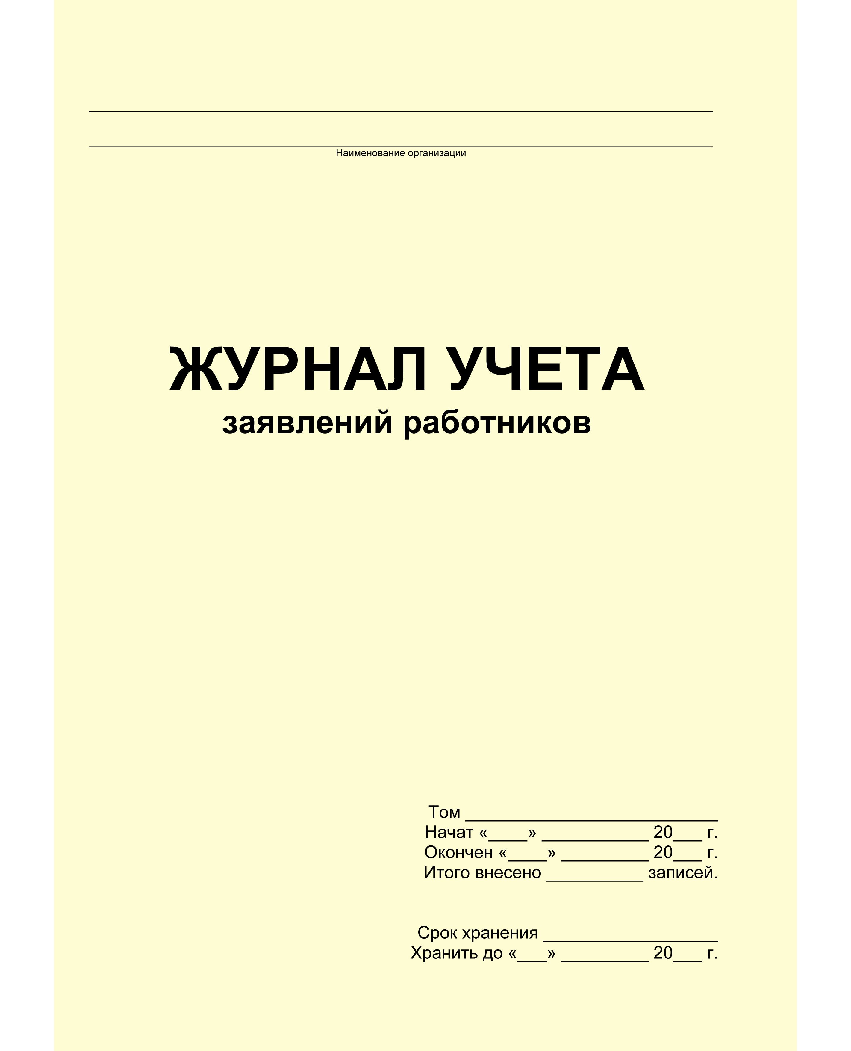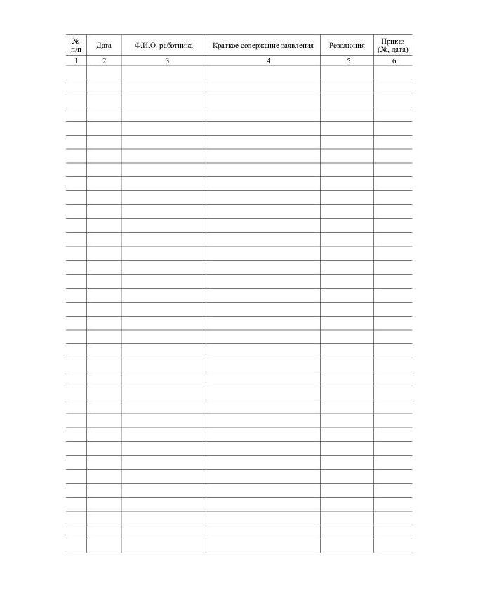 Журнал учета заявлений работников - применяется для регистрации заявлений работников.