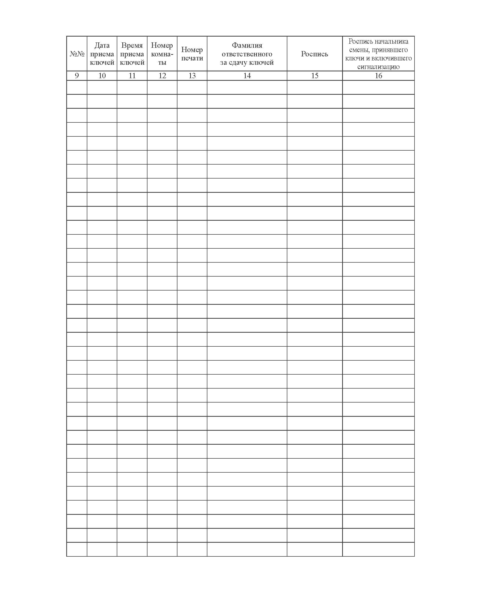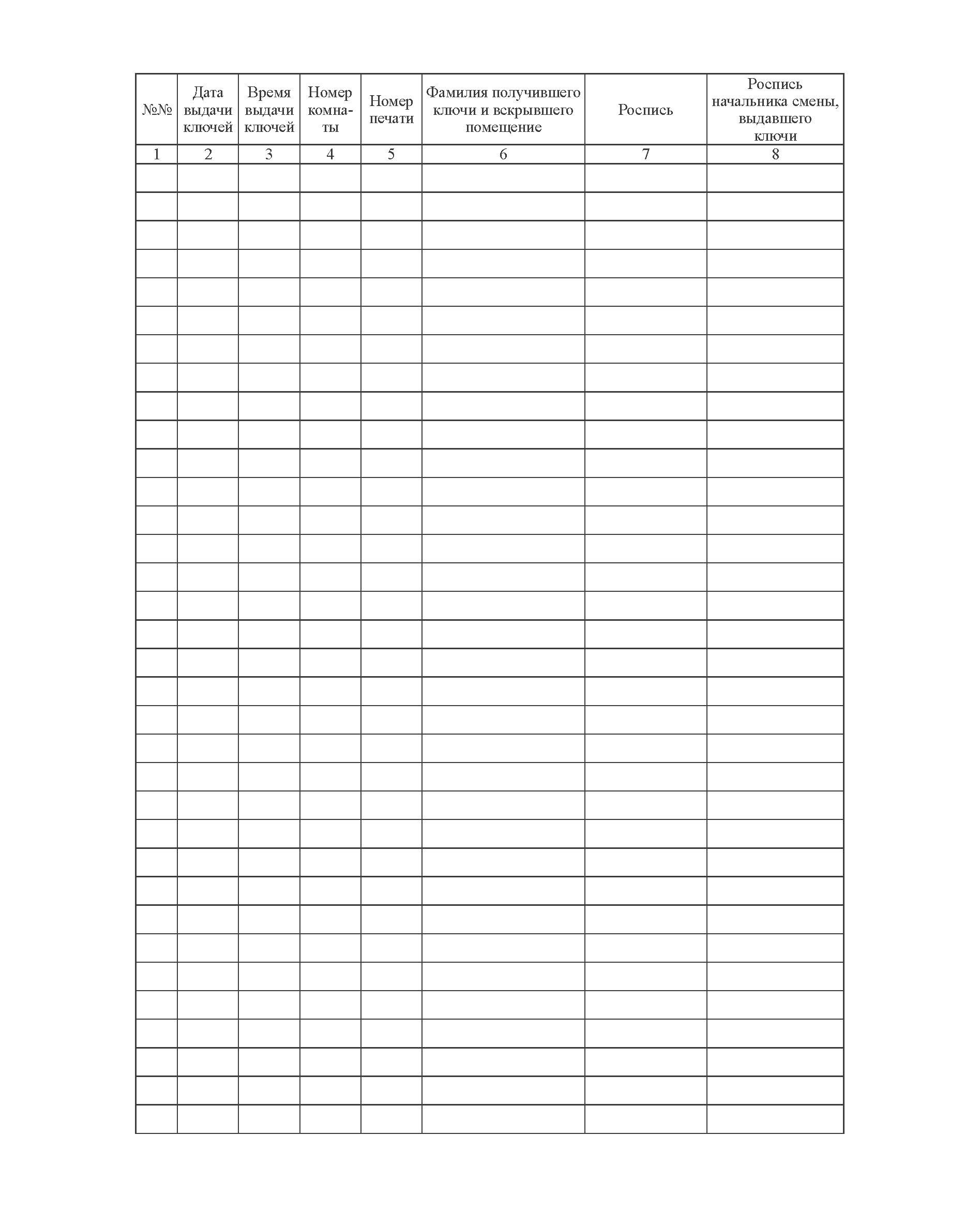 Книга приема и сдачи ключей от помещений систематизирует работу и позволит осуществлять контроль за закрытием дверей на любом объекте. Это увеличит ответственность сторон за сохранность имущества, утерю ключей, надлежащую исполнительную дисциплину, поддержание категории безопасности объекта. Книга приема и сдачи ключей от помещений заполняется и ведется дежурным сотрудником или службой охраны
