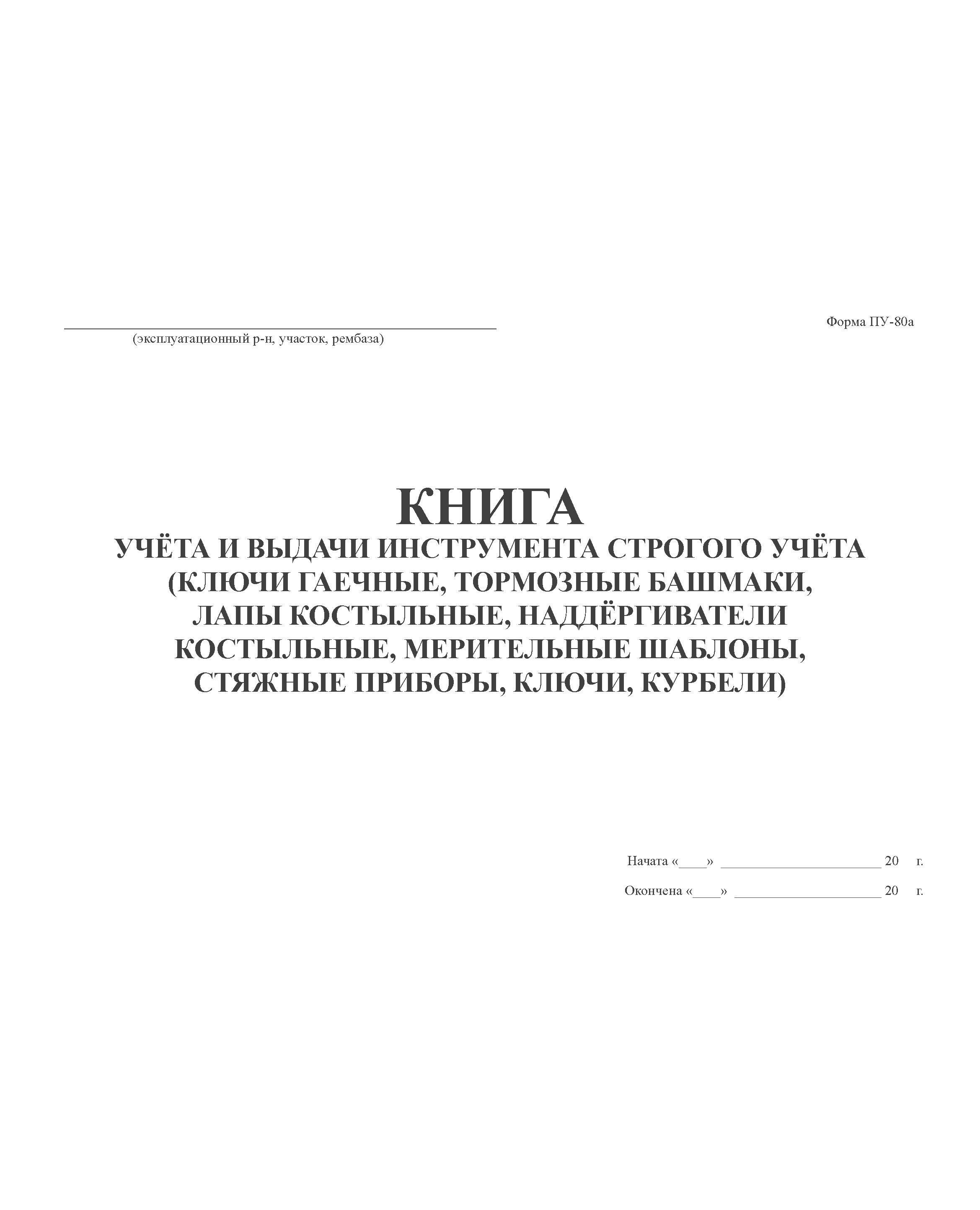 Книга учета и выдачи инструмента строгого учета (форма ПУ-80а) (200 стр, прошитый)