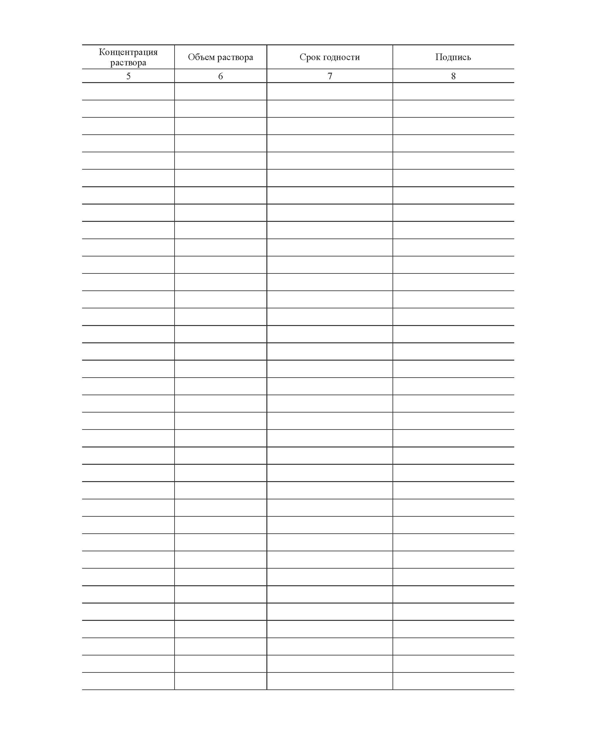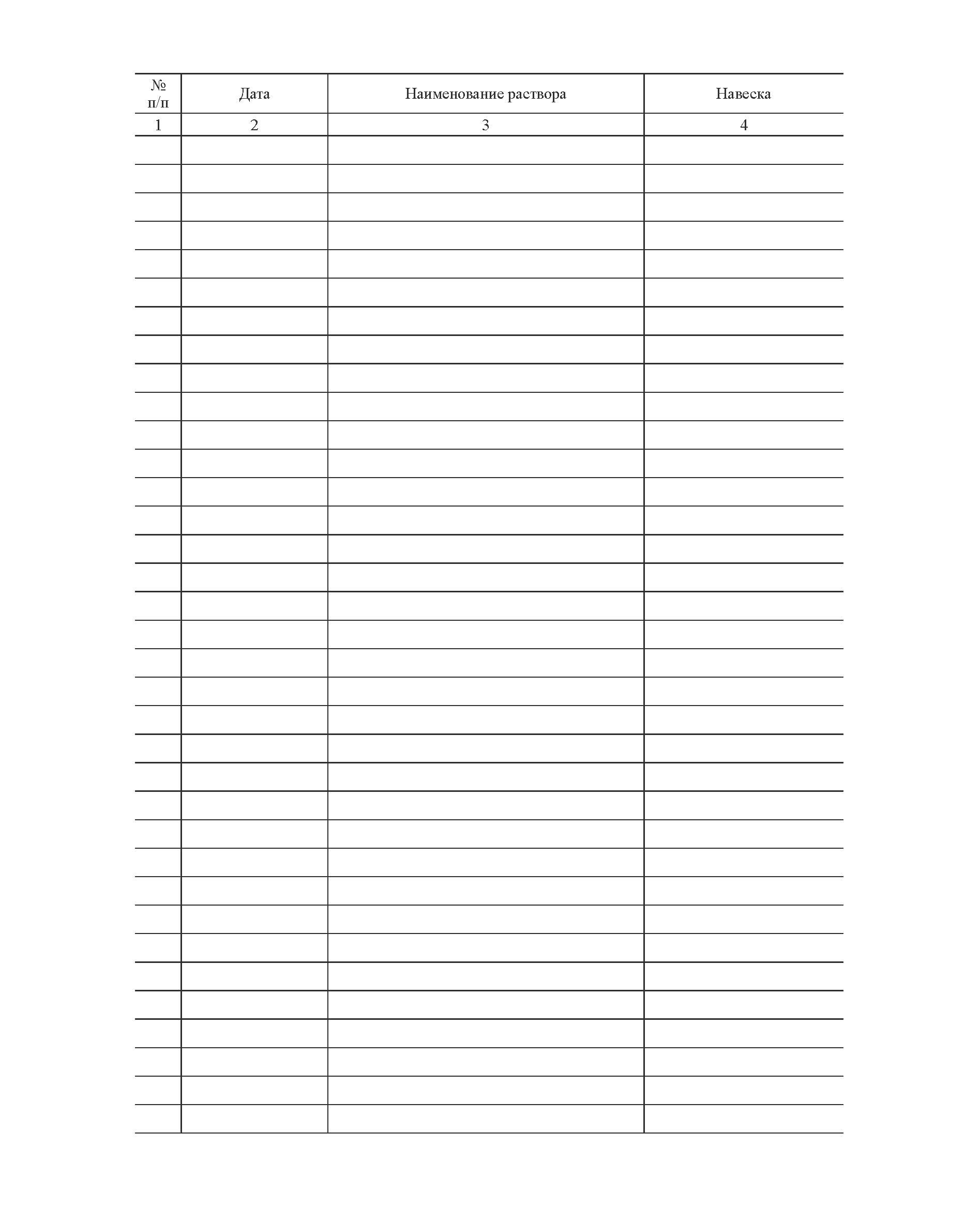 Книга учета приготовления растворов для химической лаборатории (прошитая, книжная, 100 страниц)