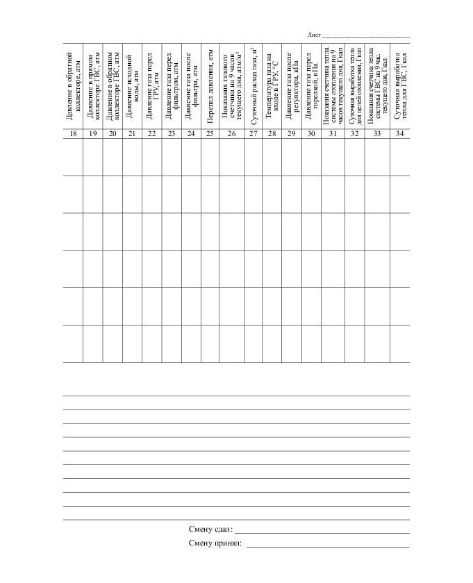 Сменный журнал операторов котельной (приложение к Типовой инструкции по безопасному ведению работ для персонала котельных РД 10-319-99) (прошитый, 100 страниц)