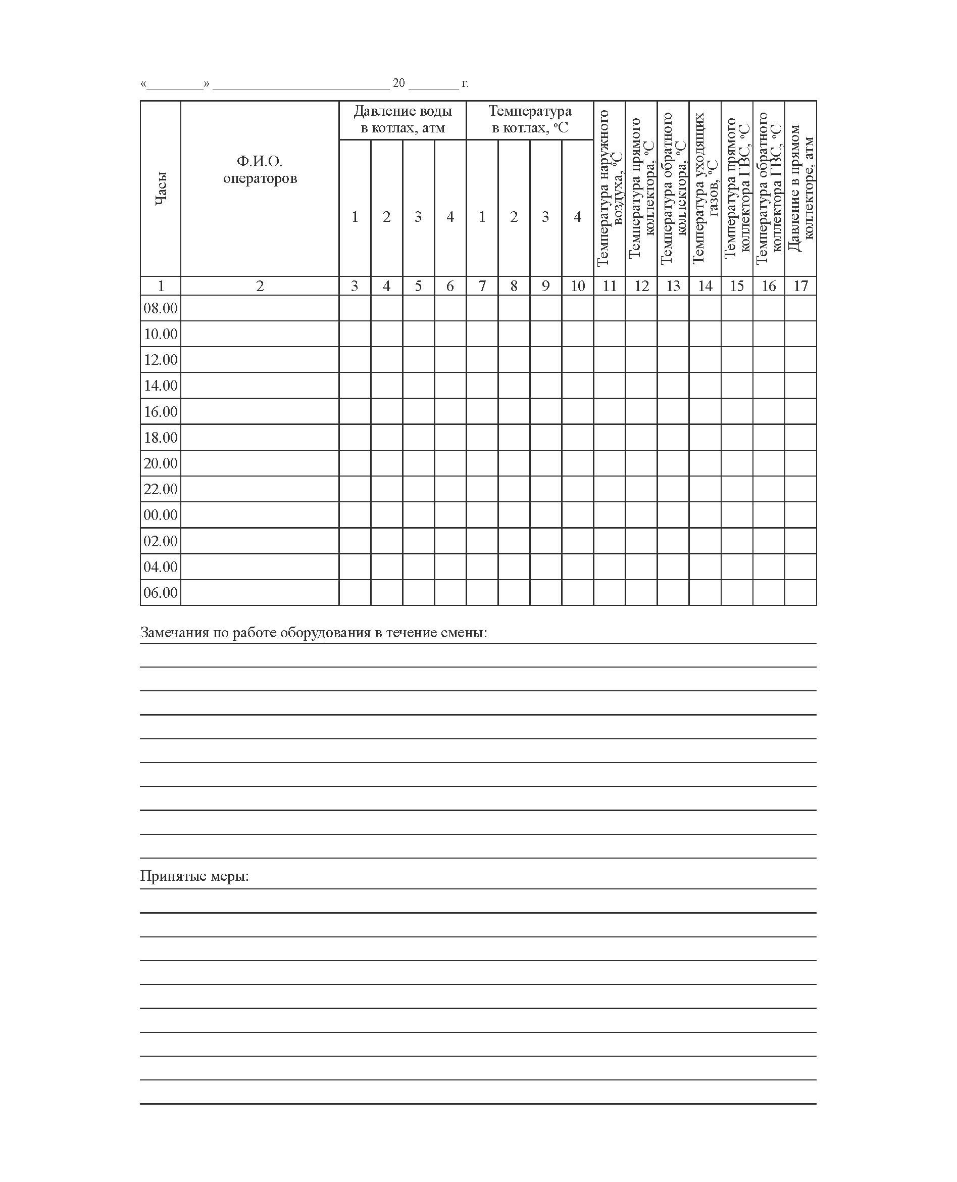 Вахтовый журнал оператора котельной установки (100 странициц, прошит)